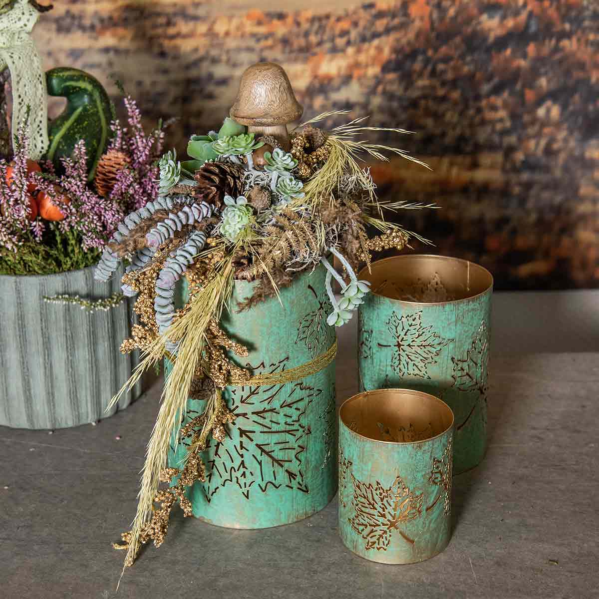 Termék neve: Lámpás őszi teamécses tartó fém Ø8/10/13cm 3 db-os készlet