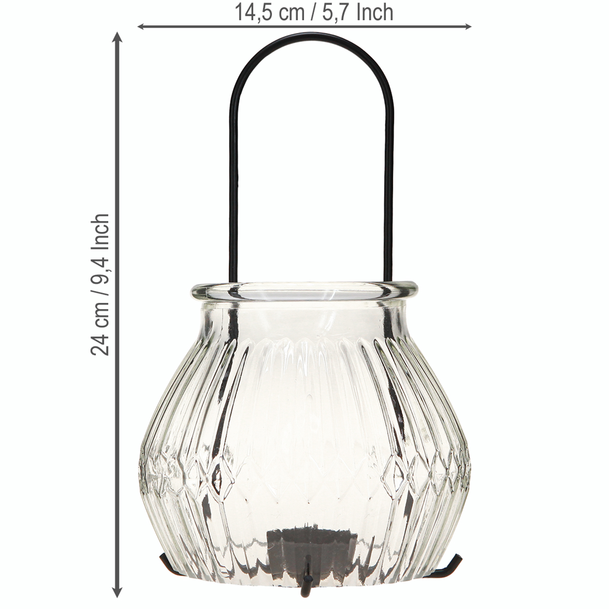 Az átlátszó üveg és a fekete fém harmonikus kombinációja nemcsak megjelenésében, hanem sokoldalúságában is lenyűgözővé teszi a lámpást. Körülbelül 14,5 cm átmérőjével ez a szemet gyönyörködtető díszítőelem ideális különféle alkalmakhoz és belső stílusokhoz. Az átlátszó üvegkupola elegáns barázdált kialakításával egy tartósítóedényre emlékeztet, és nosztalgikus bájt kölcsönöz a teamécses-tartónak, amelyet különösen a retro és vintage dekor szerelmesei kedvelnek. A hosszú nyélnek köszönhetően a lámpás rugalmasan elhelyezhető függő dekorációként az erkélyen, teraszon vagy a kertben, illetve könnyen és kényelmesen szállítható. Különösen alkalmas esküvői fogadások, kerti partik vagy hangulatos esték hangulatos megvilágítására a nappaliban. Az átlátszóság és a sötét fém stílusos összjátéka számtalan kombinációs lehetőséget nyit meg más dekorációs tárgyakkal, például egyszerű gyertyákkal, virágkompozíciókkal vagy modern vázákkal.