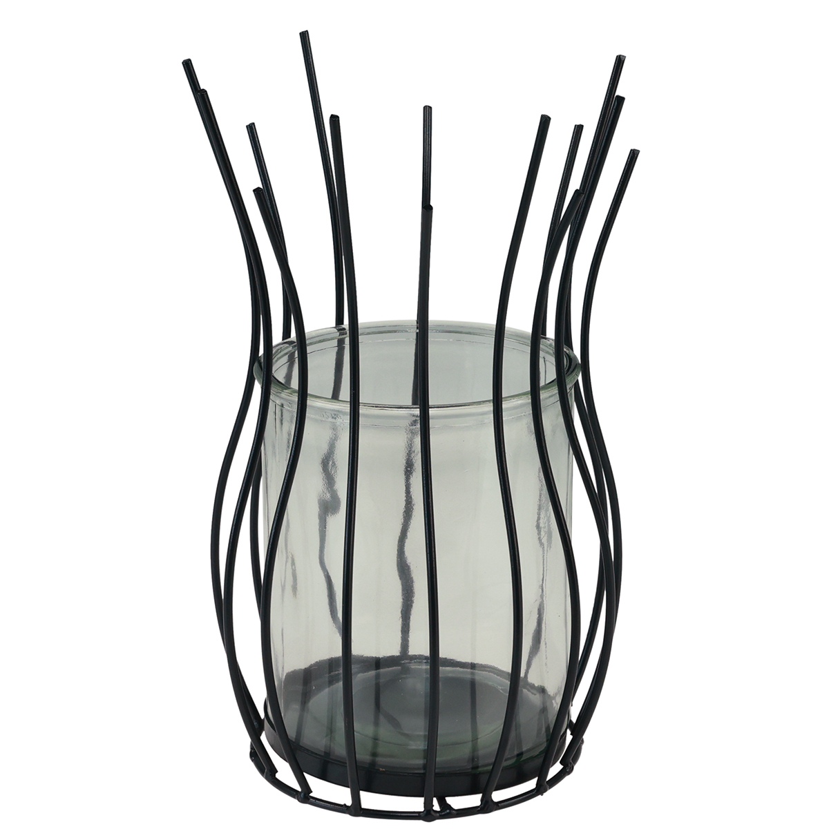 Teremtsen meleg és stílusos légkört otthonában vagy rendezvényeken az elegáns fekete fémlámpával és átlátszó üvegbetéttel. Tökéletes a lakberendezőknek, virágüzleteknek és a környezetükben a finom akcentusok szerelmeseinek.