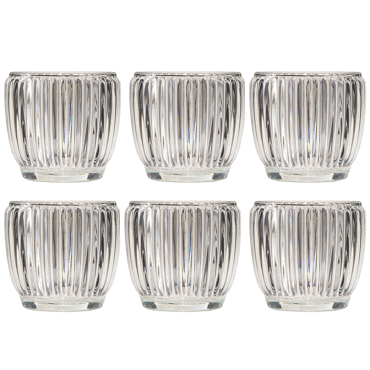 Lámpás üveg gyertyatartó hornyokkal átlátszó Ø7cm 6 db