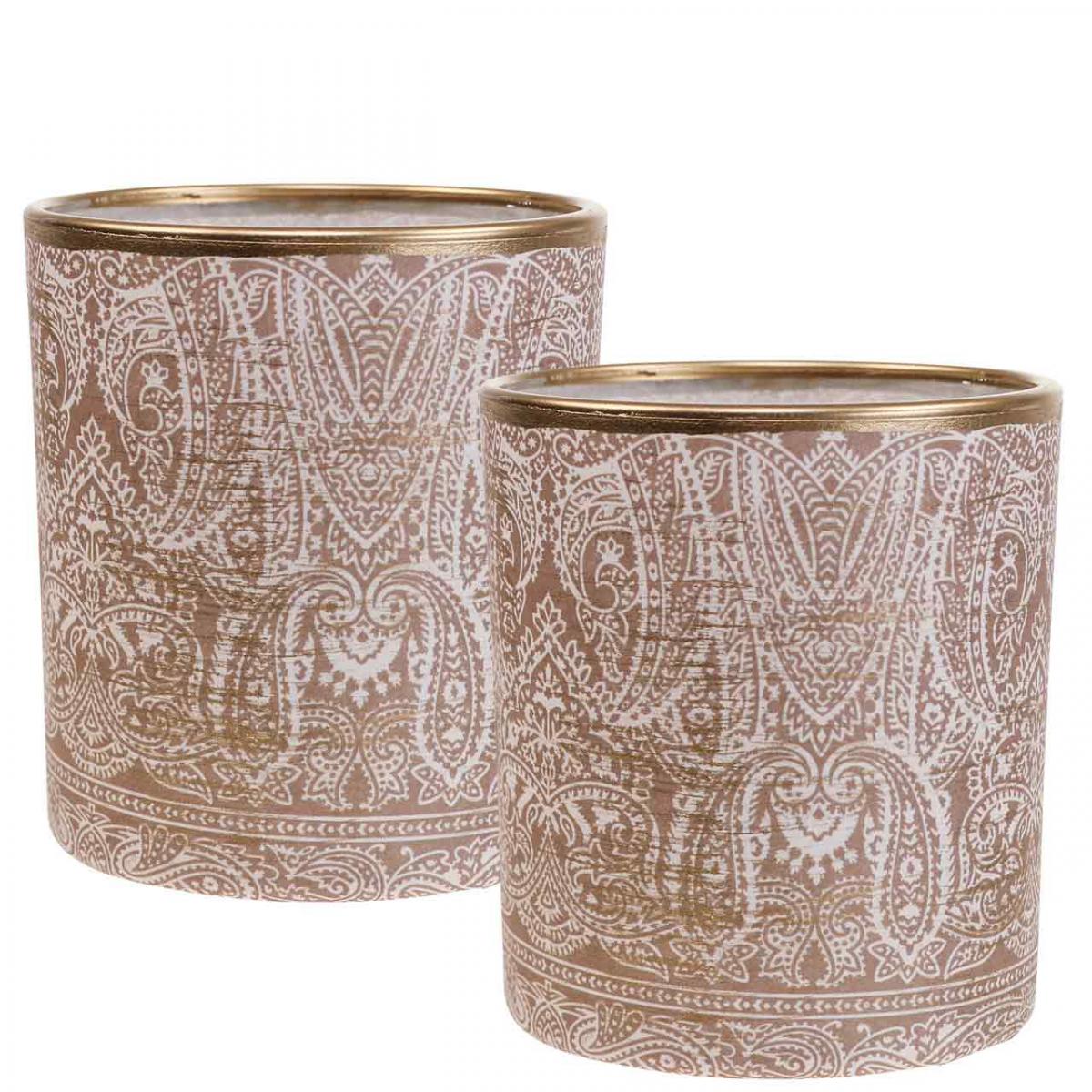 Lámpás üveg tealámpa tartó Paisley mintás Ø8cm H9cm 2db