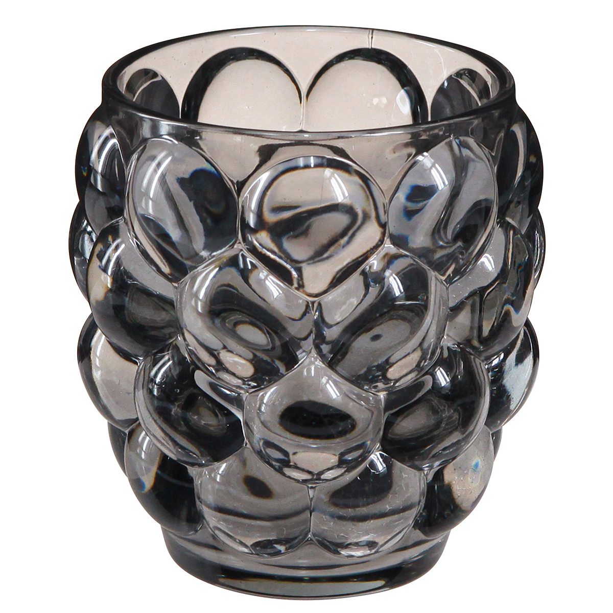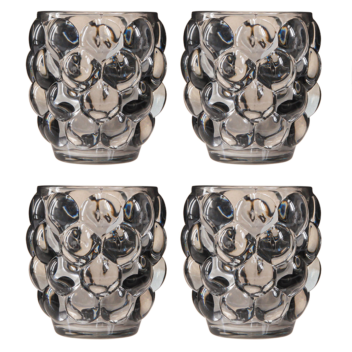 Lámpás üveg teamécses tartó szürke színezett Ø9cm H9,5cm 4db