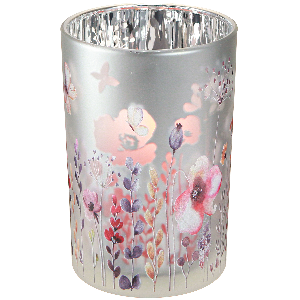 Alakítsa át bármelyik helyiséget az elegáns ezüstszínű üveglámpával, amely pillangó- és mákmotívumával álmodozásra hív. Körülbelül 18 cm magasságával és színes kialakításával tökéletes kiegészítője a tavaszi és nyári asztaldíszeknek. A második motívum, amely az ezüst színű belső rétegen található, lenyűgöző 3D hatást kelt, amely minden nézőt magával ragad. Ez a kiváló minőségű üveglámpa nem csak fényt visz otthonába, hanem csillogást és eleganciát is sugároz. Csodálatosan kombinálható a Floristik24 egyéb díszítőelemeivel, mint például stílusos szárított virágokkal vagy modern vázákkal, és ideális minivázaként száraz dekorációhoz tavaszi-nyári dekorációként. Sokoldalú felhasználásának köszönhetően nem csak gyertyatartó, hanem finom dekorációs tégely romantikus estékre és bankettekre.