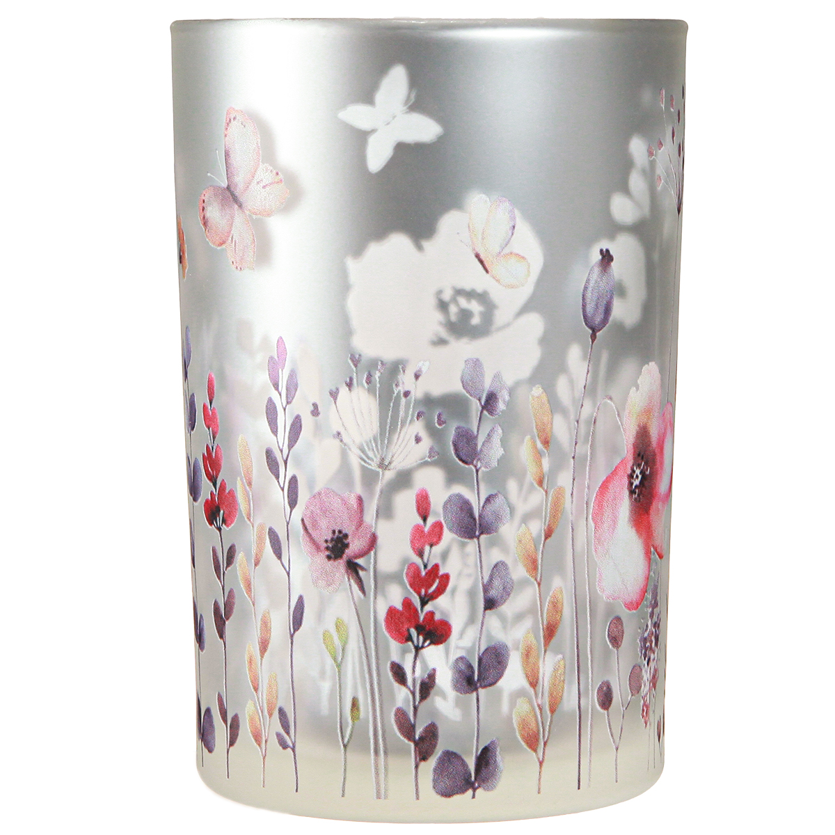 Termék neve: Lámpás üvegből pipacs pillangó ezüst színű H18cm