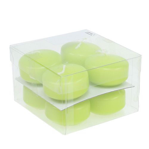 A kör alakú lebegő gyertyák kiváló minőségű viaszból készülnek, mely kívülről lime zöld színű, és dobozban, összesen 8 darabban szállítjuk. Körülbelül 4,5 centiméter átmérőjűek, körülbelül 3 centiméter magasak, és körülbelül 4 órán át égnek.