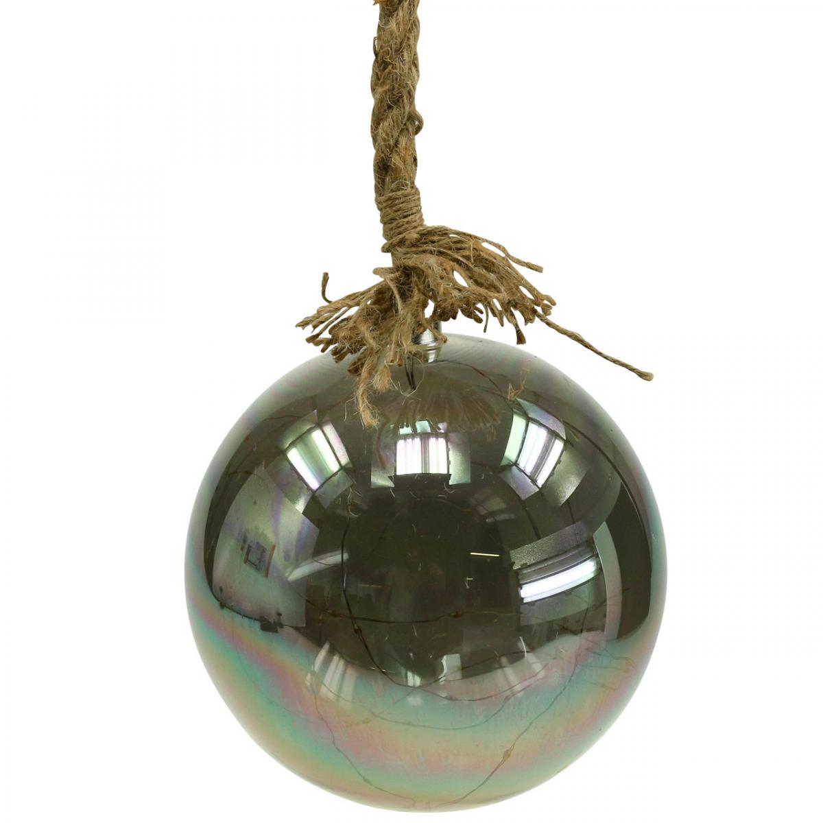 A nagy üveg fénygömb ezüstszürke árnyalatú, rusztikus juta zsinórral akasztható. Az üveggolyó belsejében LED-lámpák láncát rejtik karácsonyra. Ablakdíszként vagy mennyezetre akasztva, elemekkel felszerelve és bekapcsolva, a mini fénylánc összesen 40 kis LED-es lámpája hozza világítani a LED-es üveggömböt.