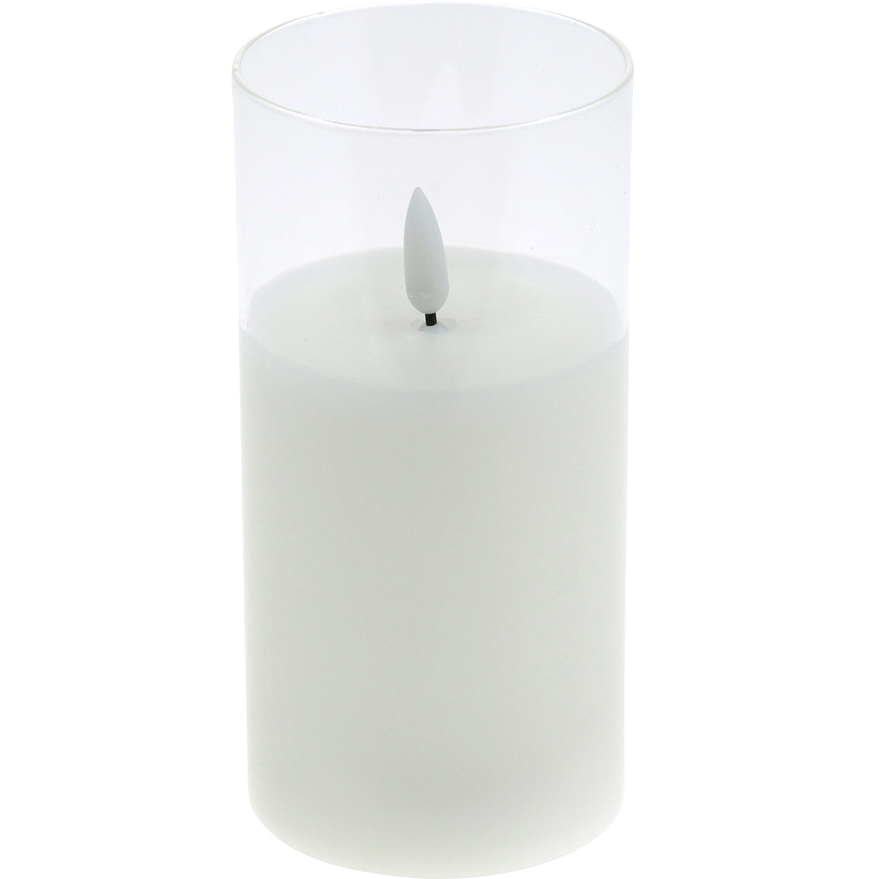 LED gyertya üvegből valódi viasz fehér Ø7,5cm H10cm