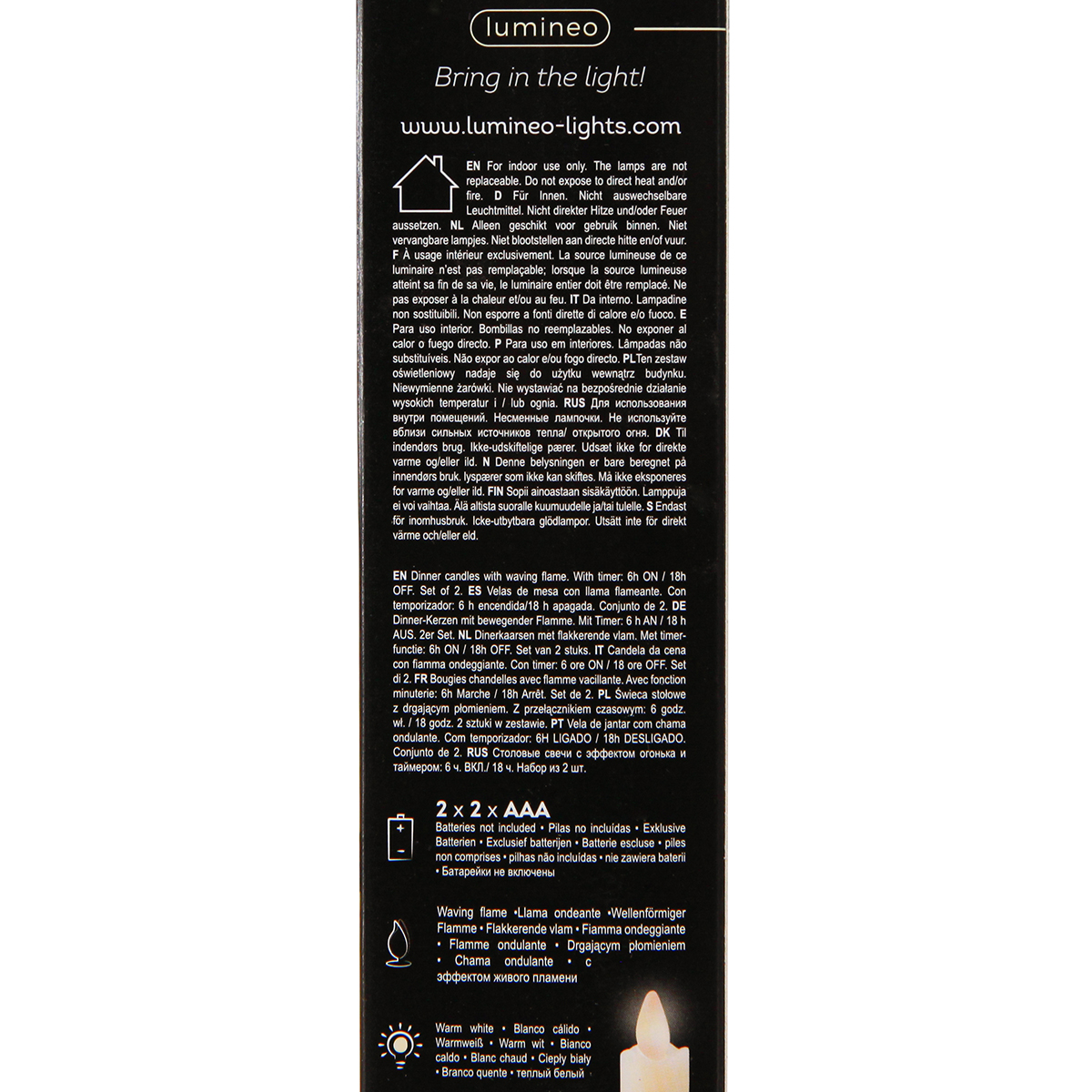 A valódi viaszból készült, mozgatható lánggal rendelkező, fehér LED-es gyertyával semmi sem romolhat el gyertyafényes vacsorádnál! A meleg fehér LED-lámpák teljes mértékben helyettesítik a kúpos gyertyákat valódi viasszal való bevonásuknak és a megtévesztően szimulált lángnak köszönhetően. Mivel a LED-es gyertyák nem tudnak tüzet okozni, ez az elemes gyertya dekoráció kétségtelenül a jobb alternatíva.A beépített időzítőnek köszönhetően akár minden nap ugyanabban az időben varázsütésre gyulladhatnak ki a gyertyák elrendezésben. 6 óra elteltével a viaszgyertya újra kikapcsol, hogy energiát takarítson meg.
