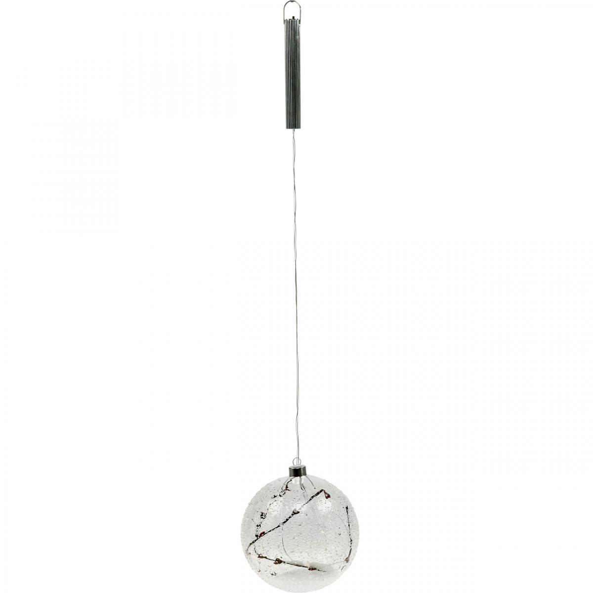 Az üveggömb belsejében egy lámpalánc található atmoszférikus LED-ekkel. A LED-ek egy része meleg fehéren világít, míg a többi hideg fehér fényben világít.