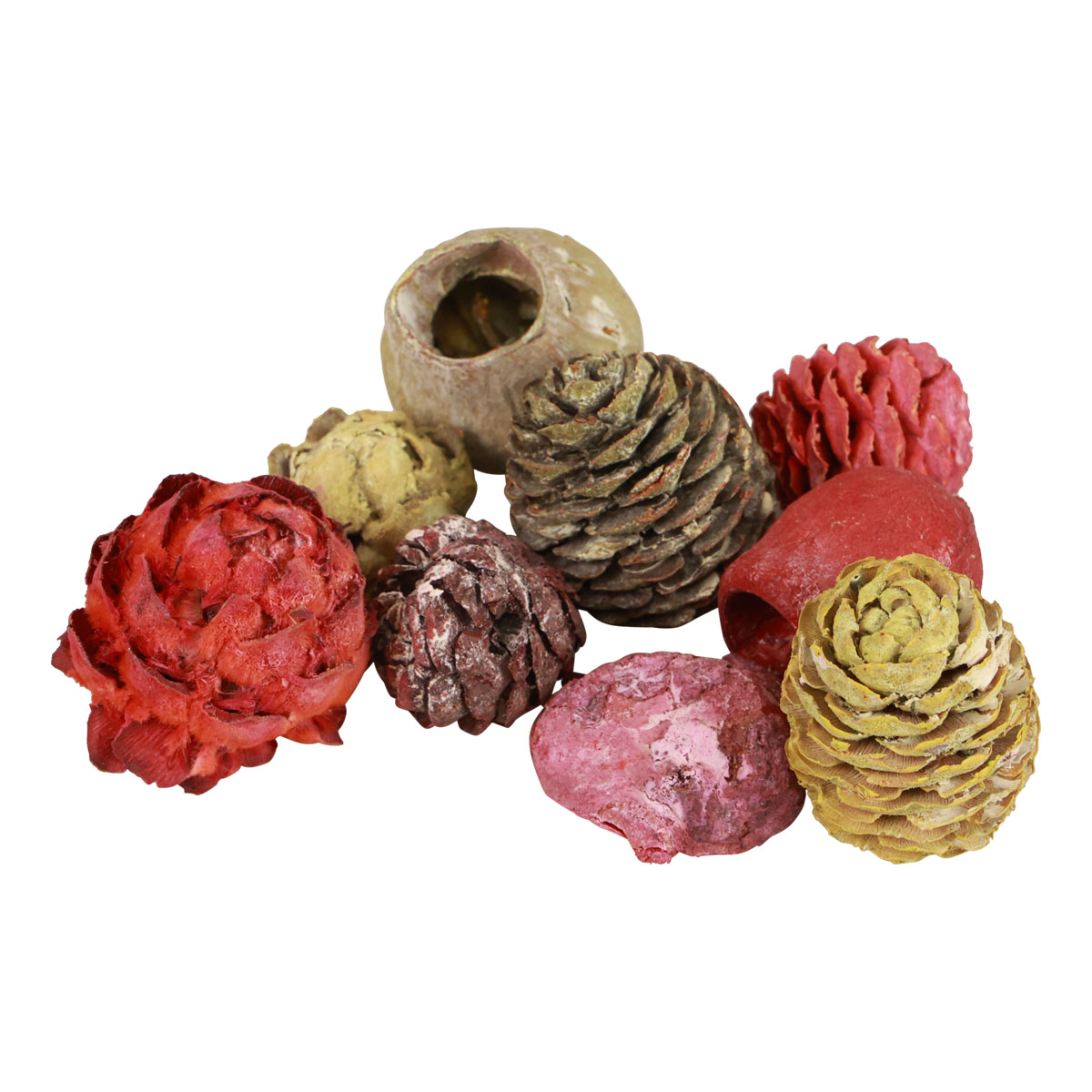 Körülbelül 300 grammos hálóban kapja meg ezt az egzotikus, harangvirággal kevert tobozkeveréket, a tobozok és a termések matt, színezett és részben fehérre mosottak.