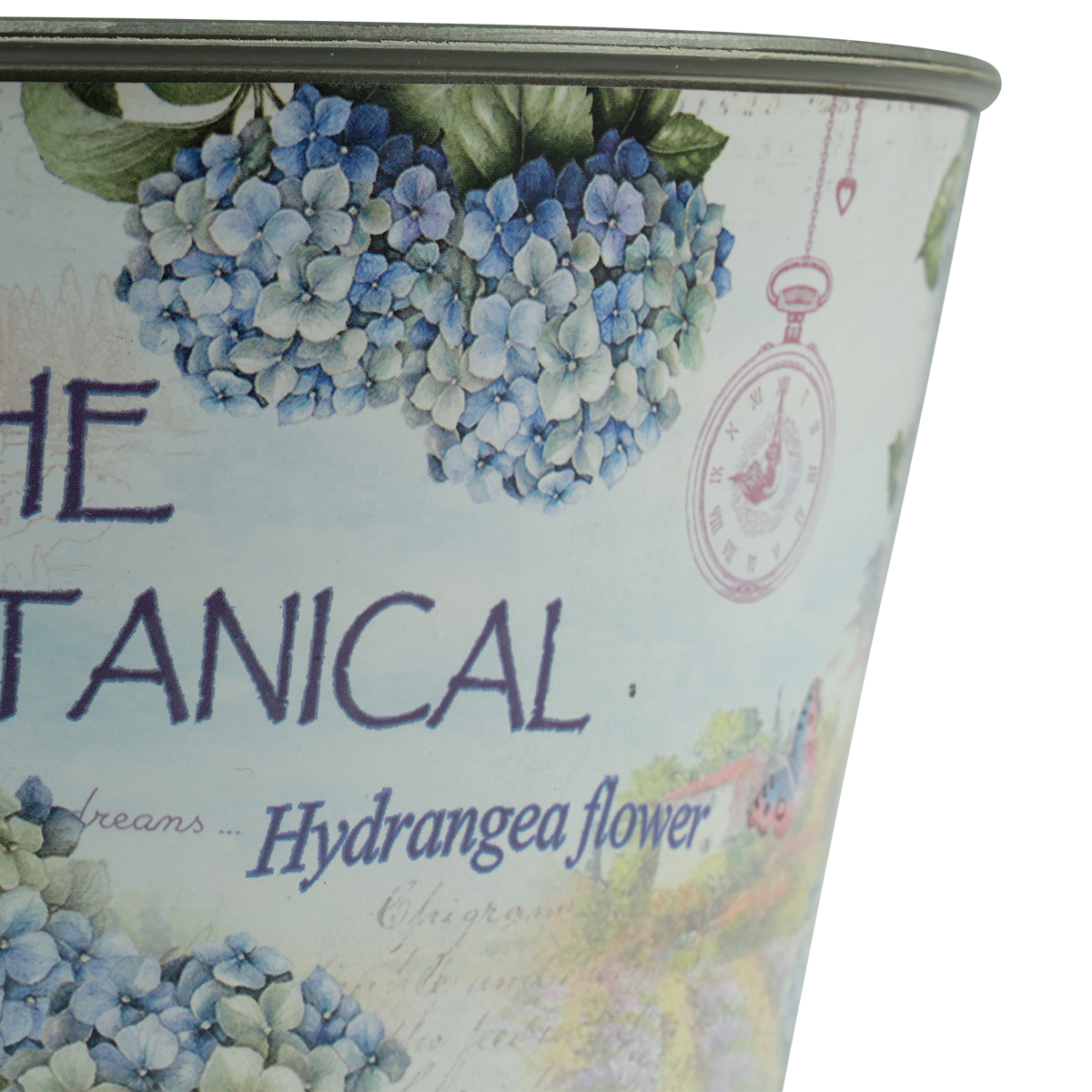 Virágtálakat és műanyag virágtartókat nyári nyomattal és ezzel a romantikus hortenzia motívummal sok más méretben és kivitelben is megtalálod itt az üzletben - szintén fémből!