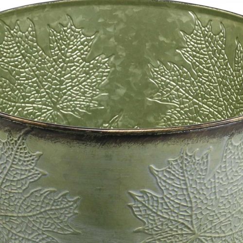 Ültető, juharlevelű fém edény, őszi dekoráció zöld Ø25,5cm H22cm