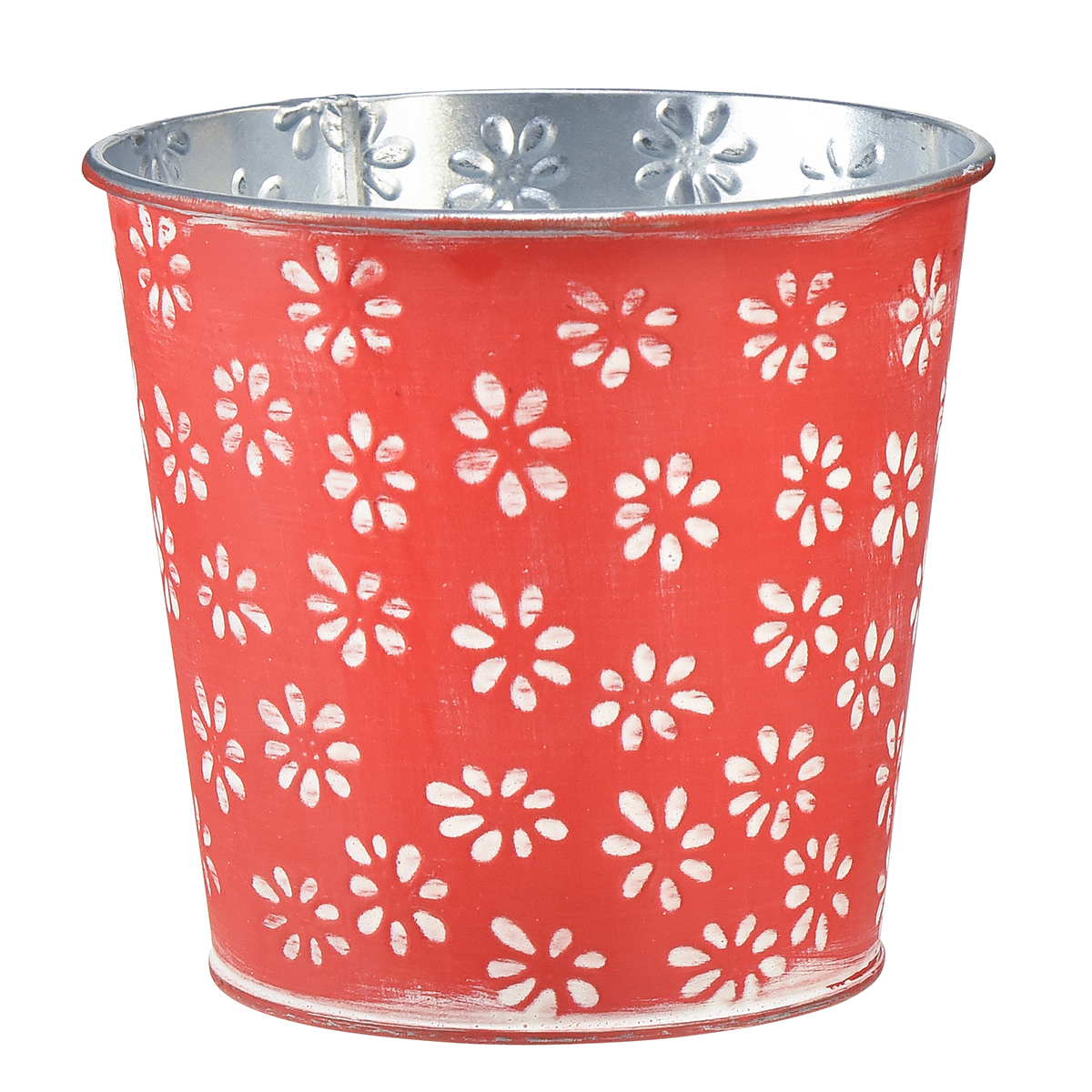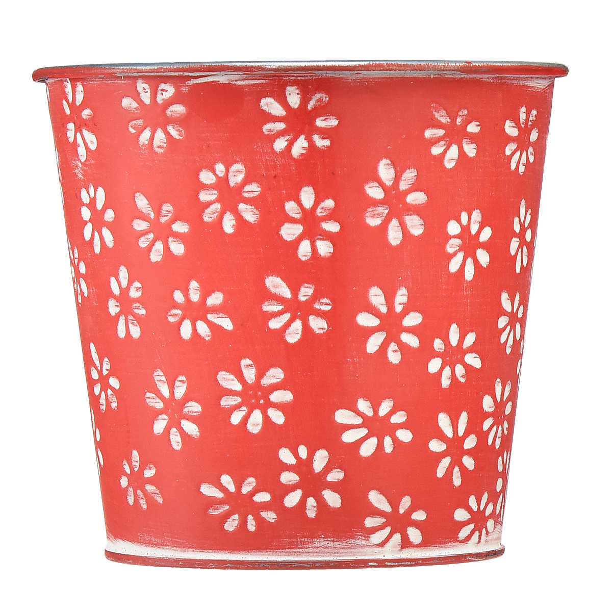Ültetőgép piros fehér mini virágcserép virágos fém Ø10,5cm H10,5cm