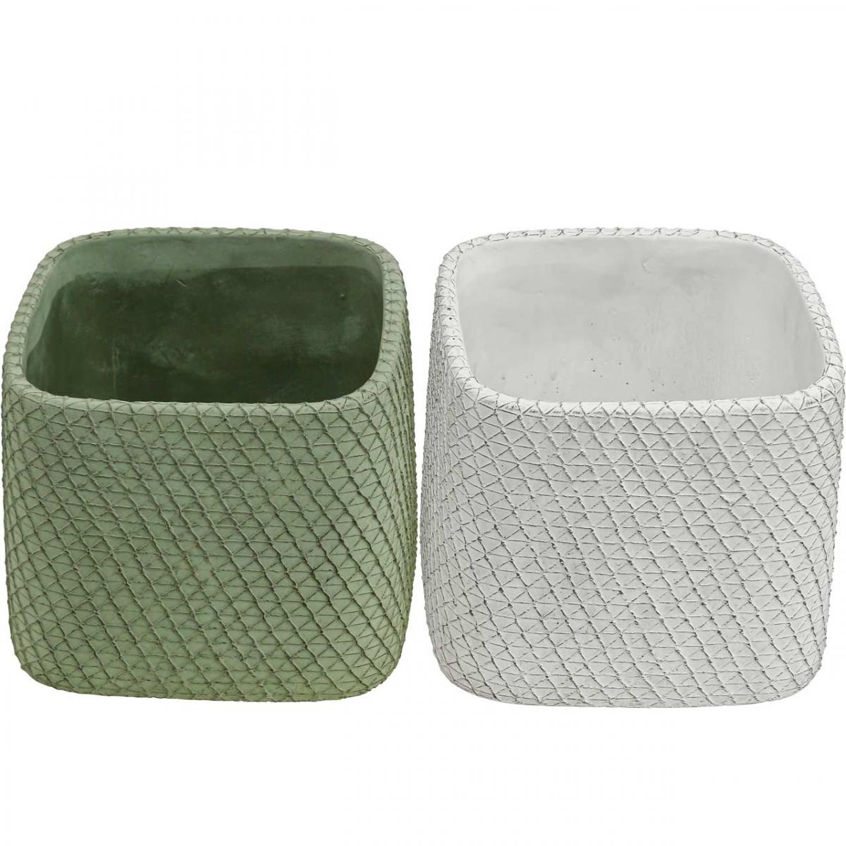 Ültetőkerámia fehér zöld relief háló 12,5x12,5cm H9cm 2db