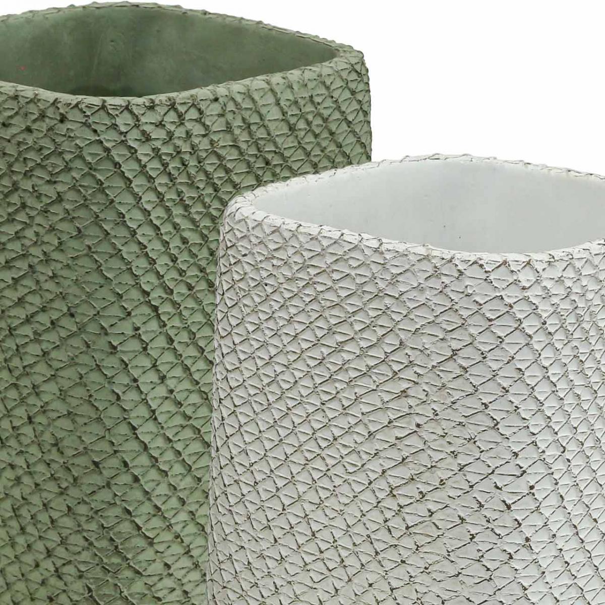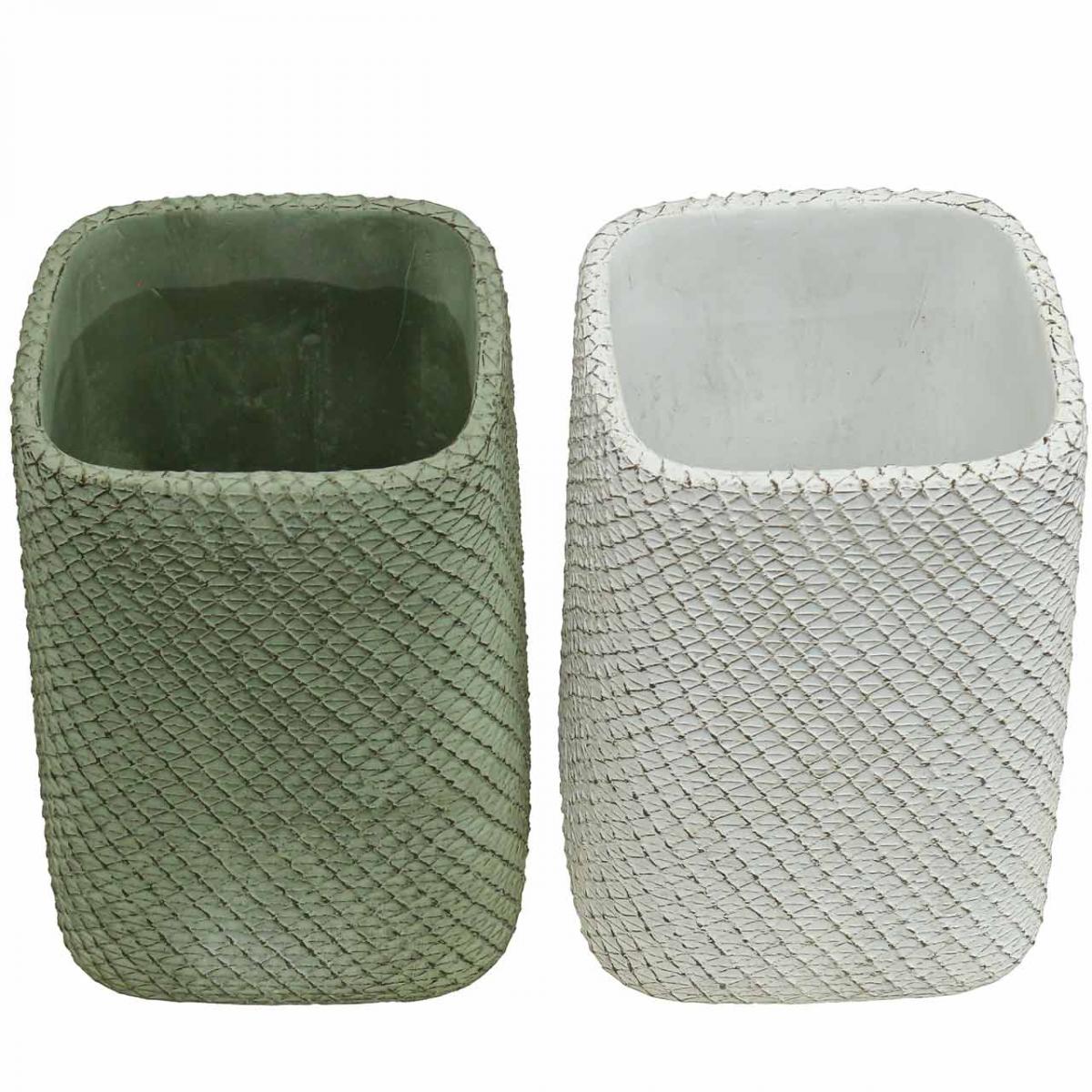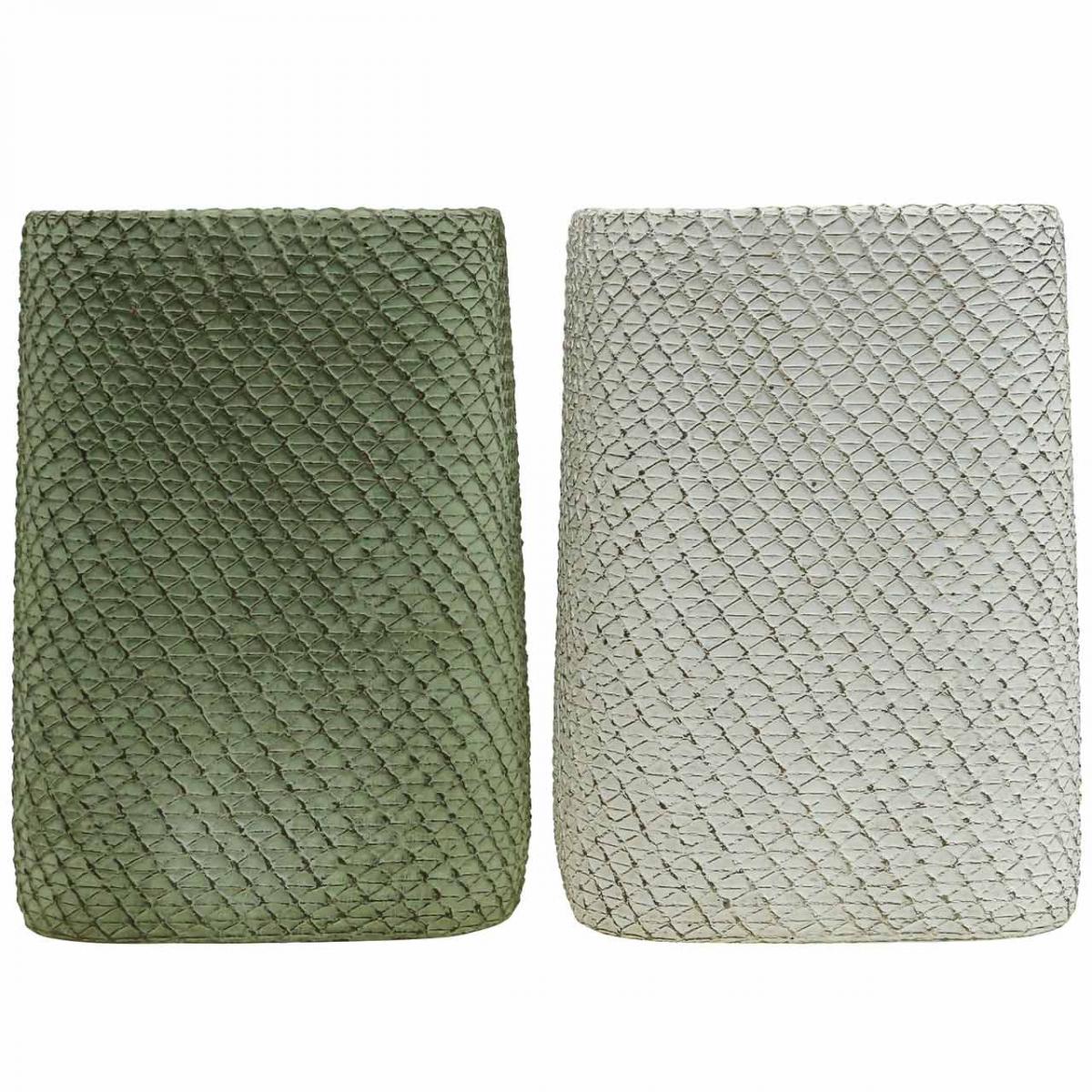 Ültetőkerámia fehér zöld reliefháló 12x12cm H17,5cm 2db
