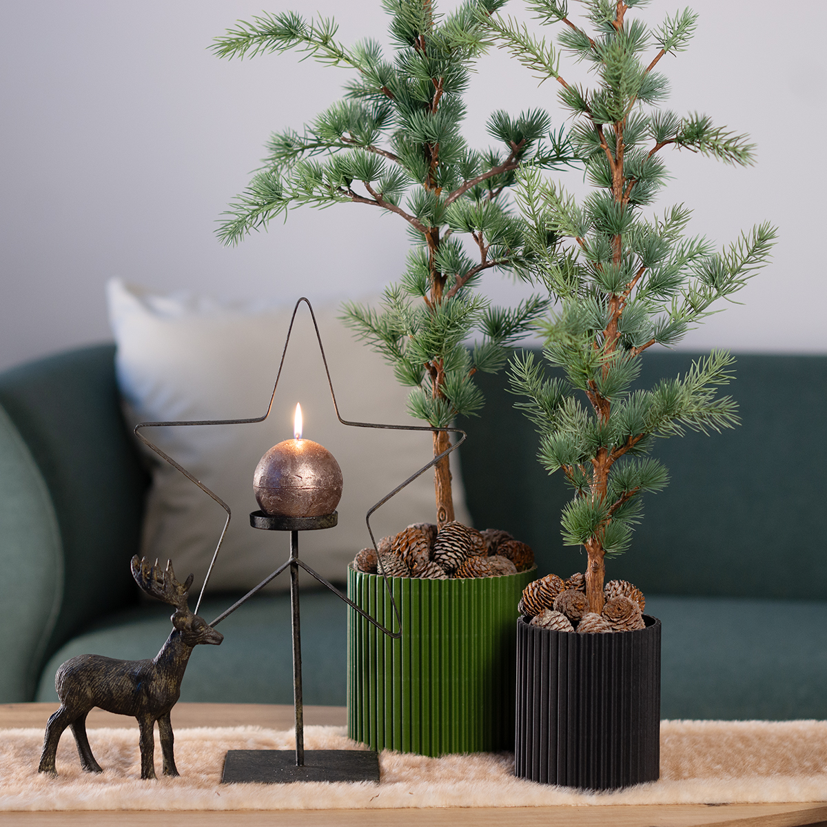 Egészítsd ki zöld virágtartódat a Floristik24 kínálatának más stílusos termékeivel. Fekete virágtartókkal kombinálva elegáns, kontrasztos megjelenést érhetsz el. A kisebb papír virágtartók is szépen mutatnak vele, harmonikus összképet teremtve. Ünnepi alkalmakra a cserepet fényfüzéreinkkel díszítheted, amelyek különleges hangulatot kölcsönöznek a kompozíciónak.