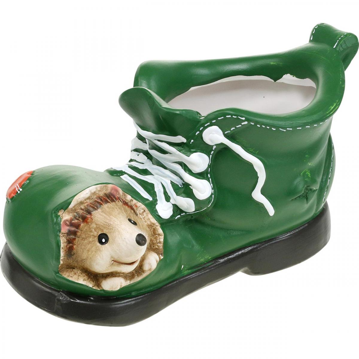 Termék neve: Ültetős dekoráció, zöld cipő sündisznóval, kerámia 14x13cm H13cm