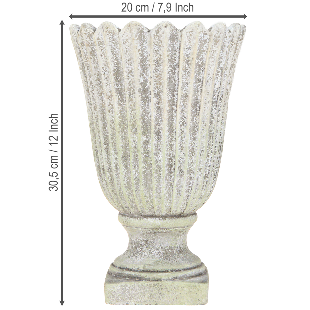 Az ültetőgép szürke színe ideális bármilyen környezetbe és bármilyen belső stílusba. A szürke nyugalmat és kiegyensúlyozottságot közvetít. A virágkehely által ihletett forma természetes szépséget és kecsességet sugároz. Az antik patina az antik virágtartót időtlen dekorációvá teszi bel- és kültéren.