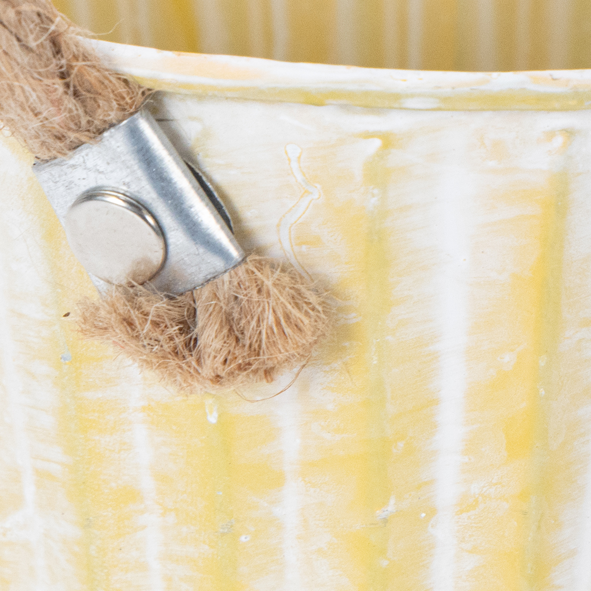 Ültetvödör, fém cserép fogantyúkkal, díszes virágtartó, rózsaszín/zöld/sárga, shabby chic, Ø12cm, M10cm, 3 db-os szett