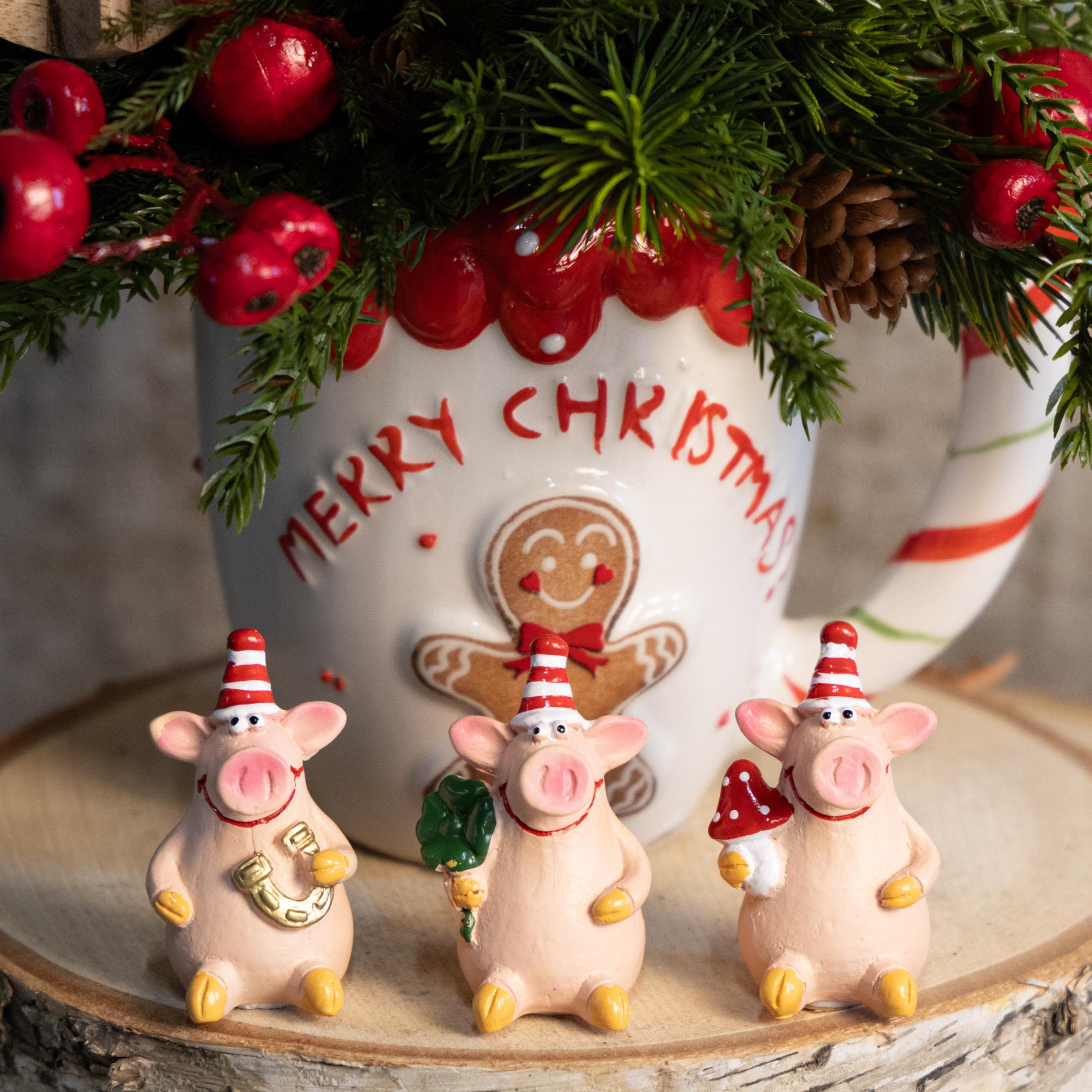 Lucky Pig Dekorációs Malac Szerencsemedve Talizmánokkal 5cm 6db