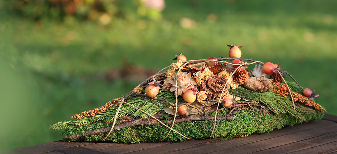 Szárított növények és természetes rostok temetési dekorációkhoz és dekorációkhoz
