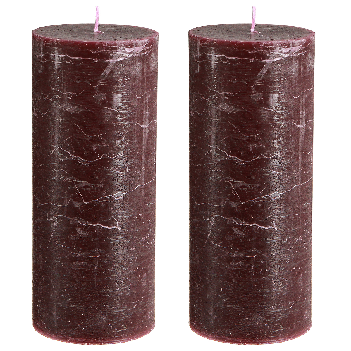 Luxus bordó oszlopgyertyák, 2 darabos készlet, egyszínű, 85x200 mm, romantikus és dekoratív használatra