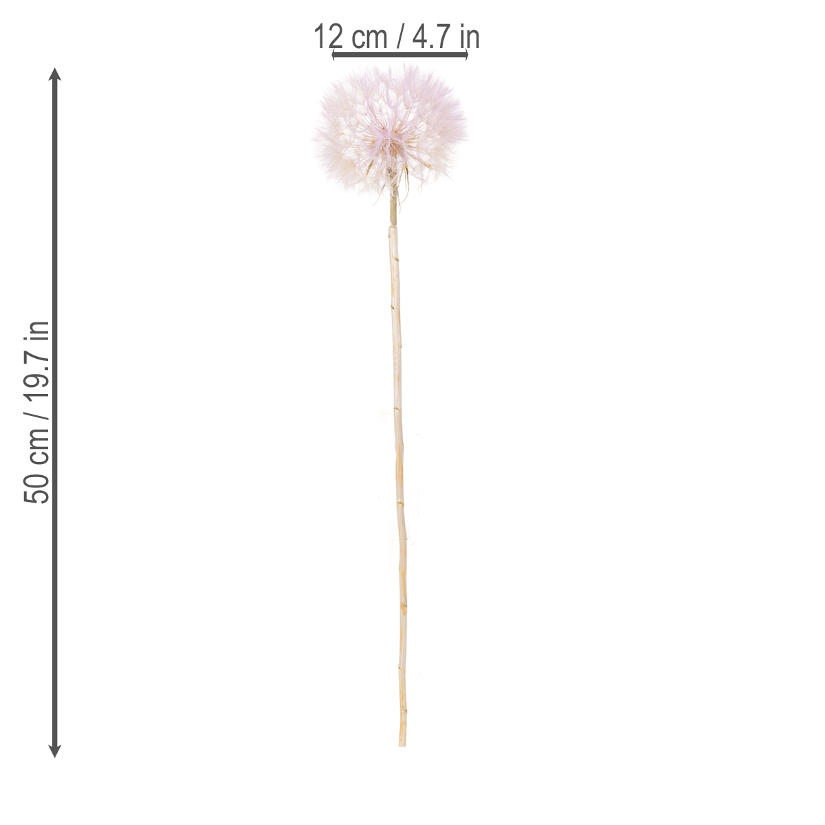 Ez a műpitypang dekoráció kiváló minőségével és időtlen dizájnjával lenyűgöző. Az 50 cm magas és 12 cm átmérőjű stílusos virágok ideálisak vázákba vagy modern lakberendezési kiegészítők. Finom rózsaszín árnyalatuk gyönyörűen kiemelkedik, és tökéletesen harmonizál olyan lakberendezési trendekkel, mint a skandináv, a japán vagy a minimalista stílus. Elegáns hatást kelt, ha természetes anyagokkal, például fával vagy kővel kombinálják.