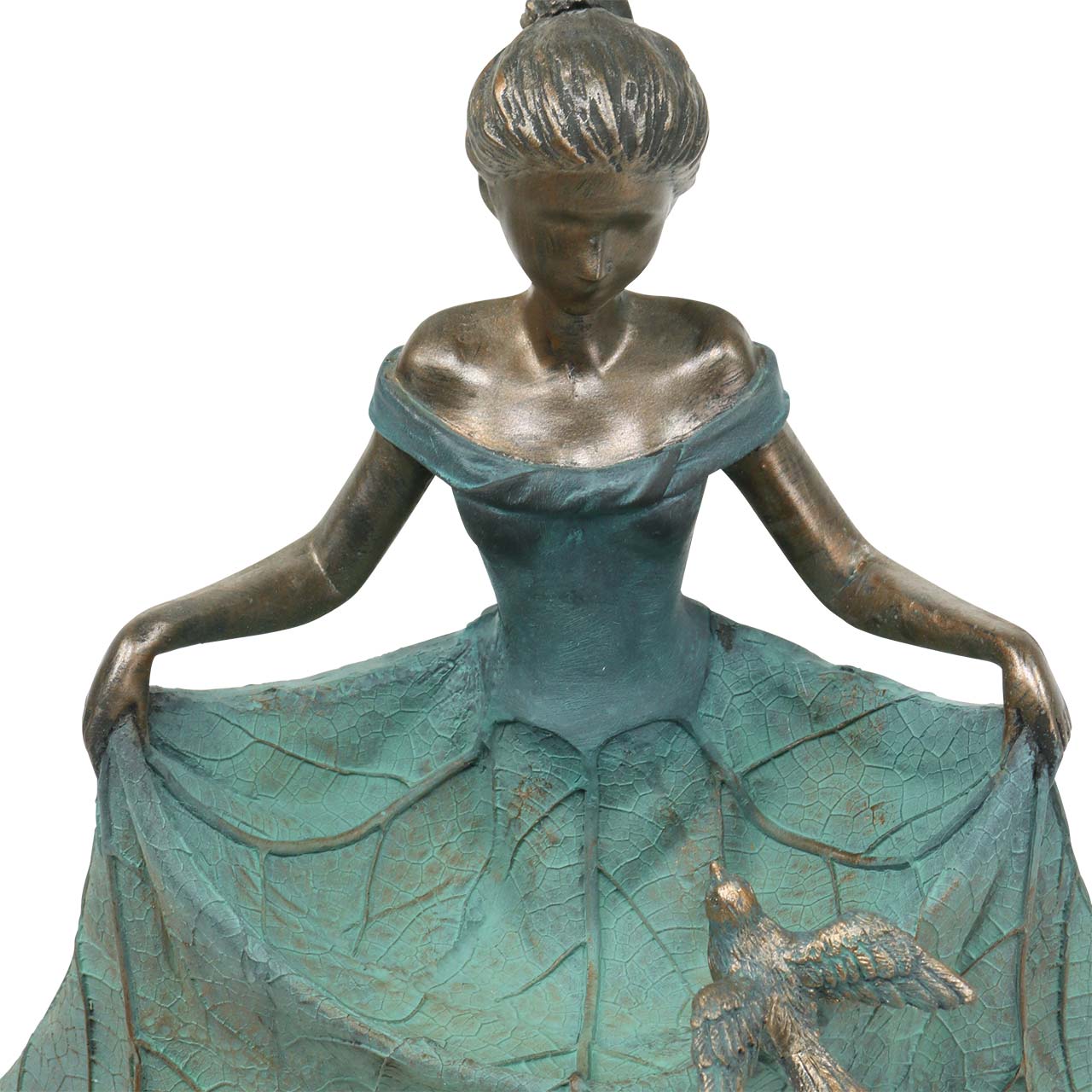 Madárfürdő kerti figura lány virágos ruhában H33,5cm