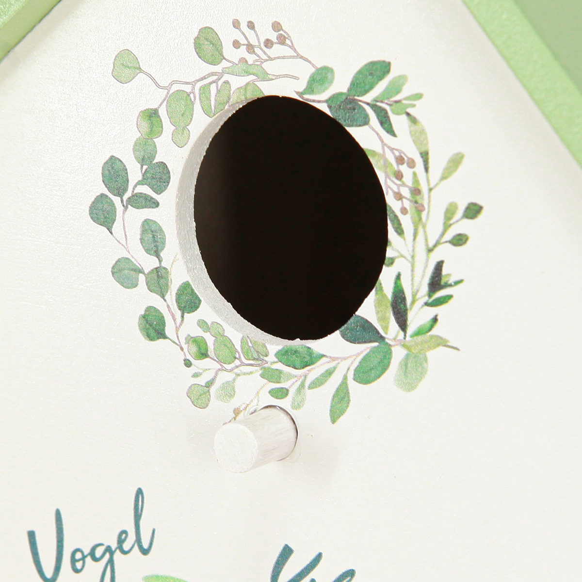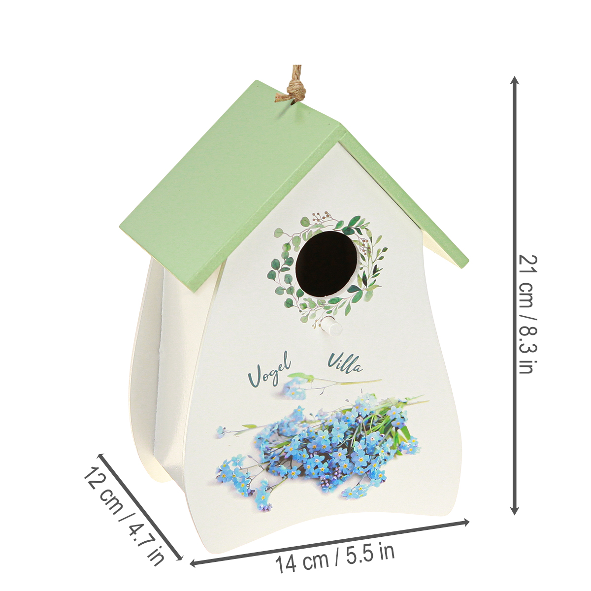 Ez a madárház nem csupán dekoratív elem; egy kis kincs mindazok számára, akik értékelik a bájos részleteket. A tető friss zöldje tökéletesen harmonizál a fa homlokzat lágy fehérségével, amelyet finom virágmotívumok díszítenek. Hangulatos vidéki házak varázsát idézi, és zökkenőmentesen illeszkedik a vintage vagy rusztikus dekorációba. 21 centiméter magas, így remekül mutat bármilyen ablakpárkányon vagy falon, azonnal magára vonzva a tekintetet. És a legjobb az egészben? Kizárólag dekoratív, így ideális beltéri használatra. A szeretetteljes kézműves munka egyértelműen látszik, így minden madárház egyedi darab. Különösen tavasszal és nyáron gyönyörű: helyezze egy friss virágokkal teli váza elé, vagy adja hozzá ezt a bájos kiegészítőt a tavaszi asztalterítékhez. És legyünk őszinték, ki ne szeretne egy kis virágos szépséget és természetes elemeket az otthonában? Az átalakítás gyerekjáték: egyszerűen nyissa ki a hátulját, adjon hozzá apró kiegészítőket vagy virágdíszeket, és azonnal friss, új külsőt kölcsönöz. A madárház különleges ajándéknak is remek ötlet, mert egyedi, praktikus és időtlenül szép.