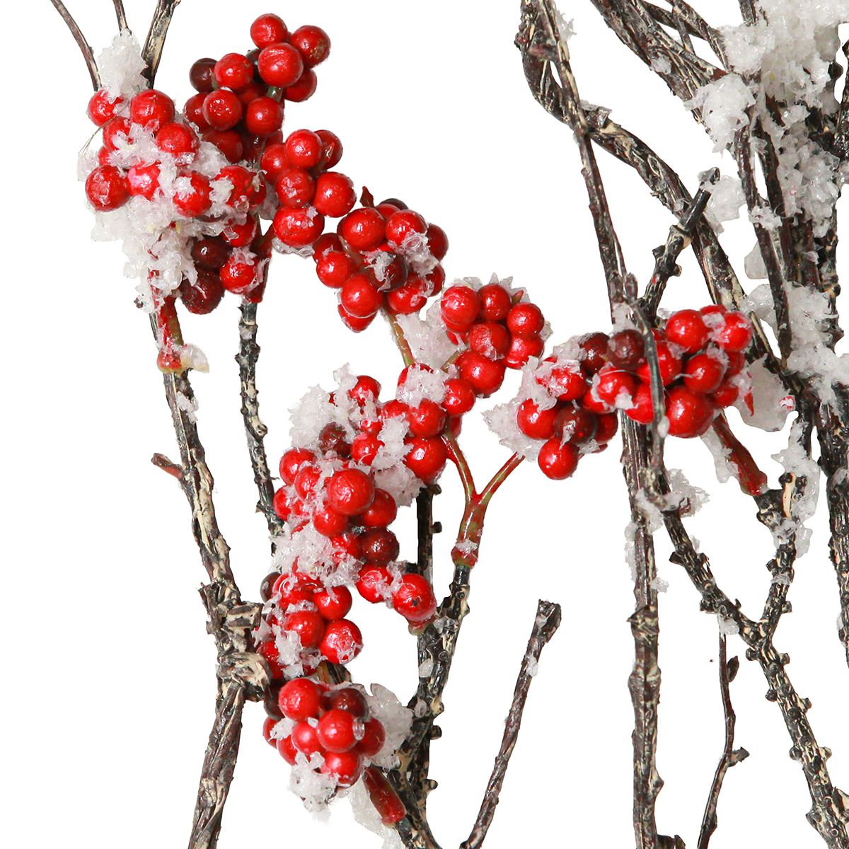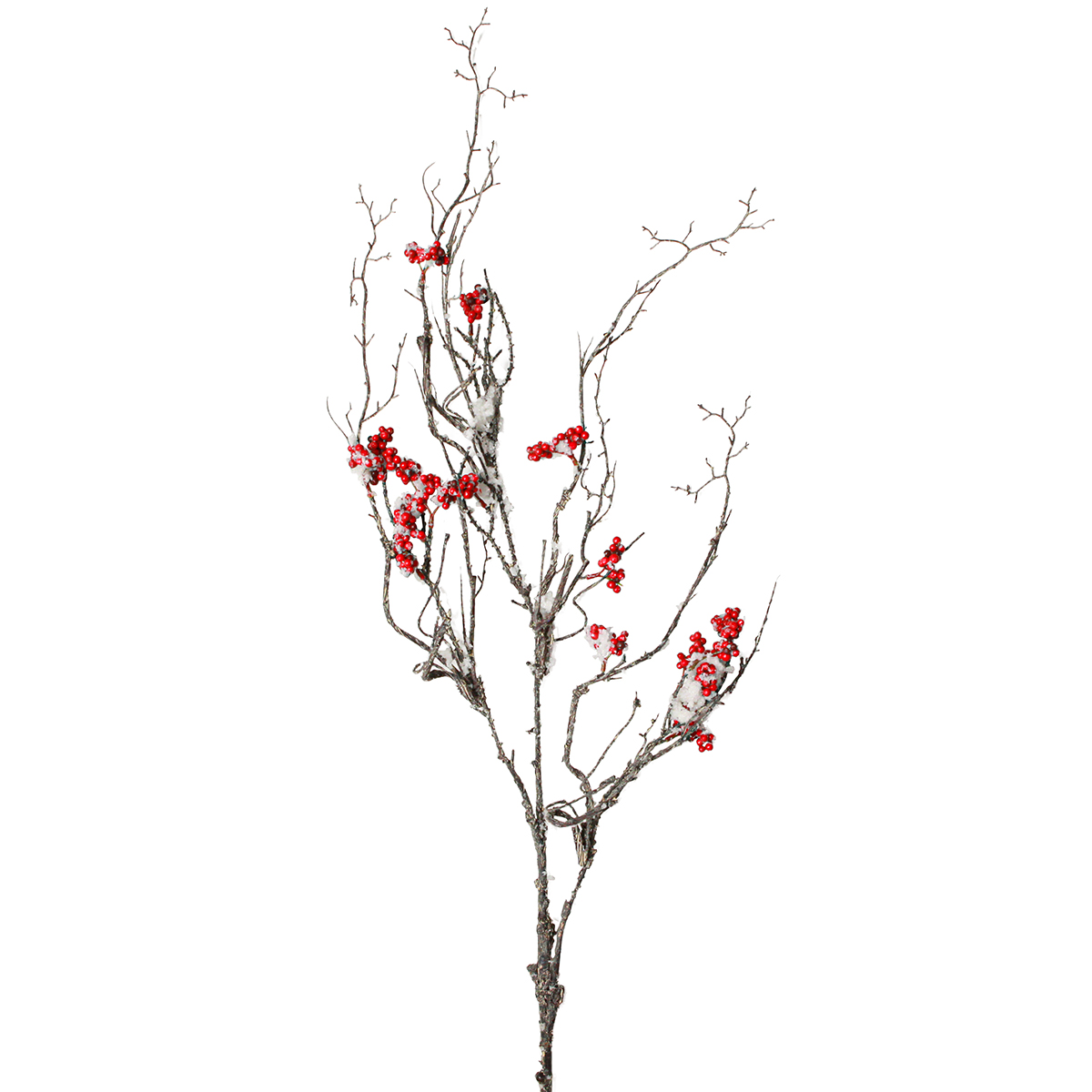 Műág hosszú, havas ág bogyókkal piros 130cm