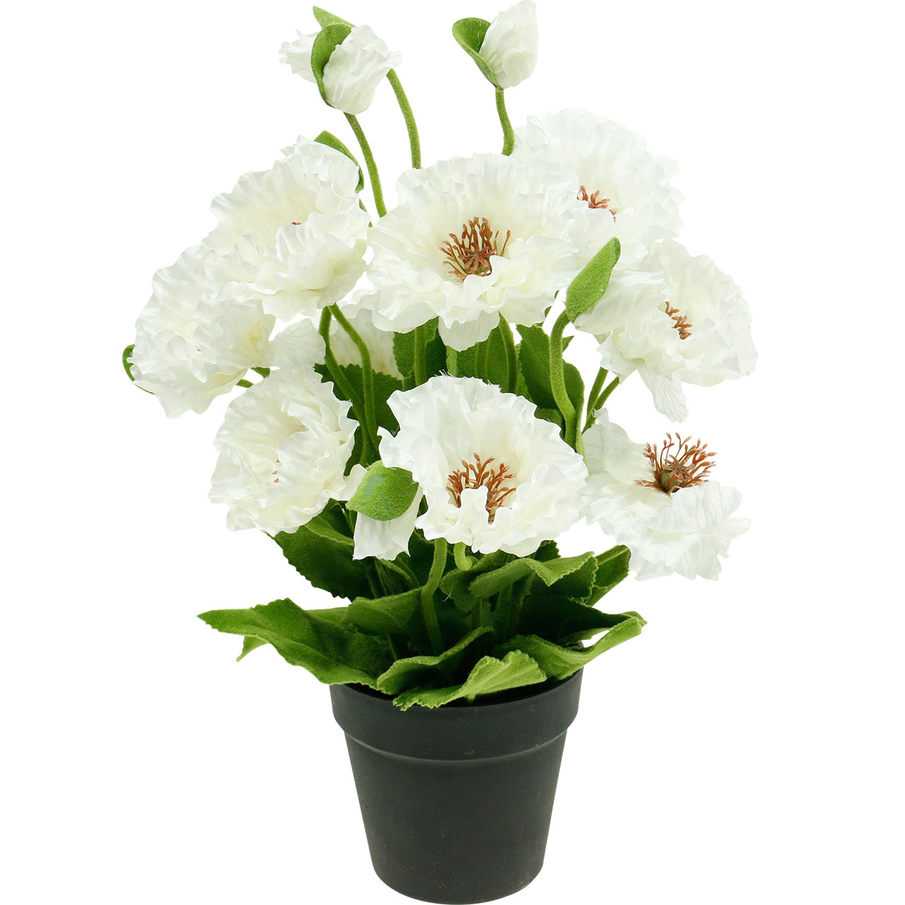 Termék neve: Mák cserépben fehér selyem virágok virágos díszítéssel