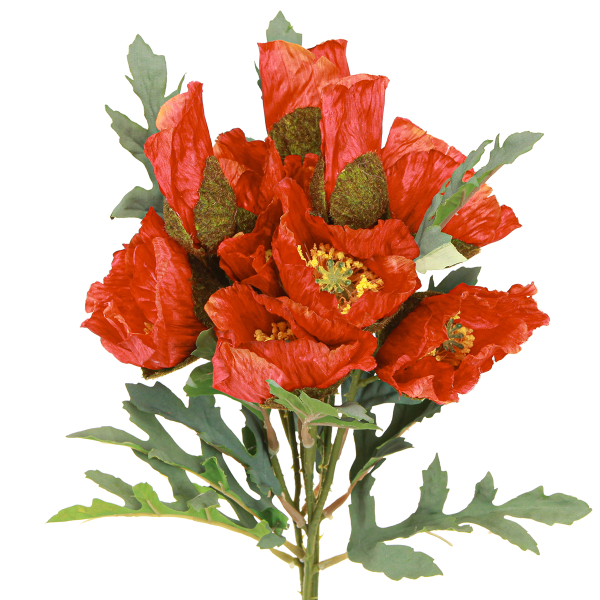Mák díszítés Mák mesterséges piros 45 cm csokor 3 db-mal