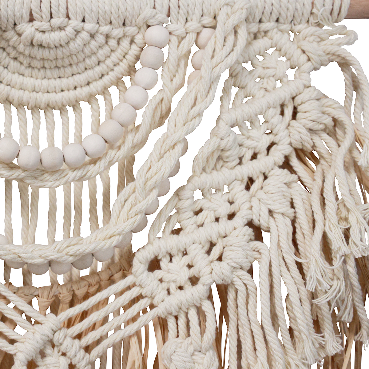 Termék neve: Makramé fali dísz, bohém, krém, natúr fa gyöngyök, textil, 38x100cm, dekoratív kiegészítő