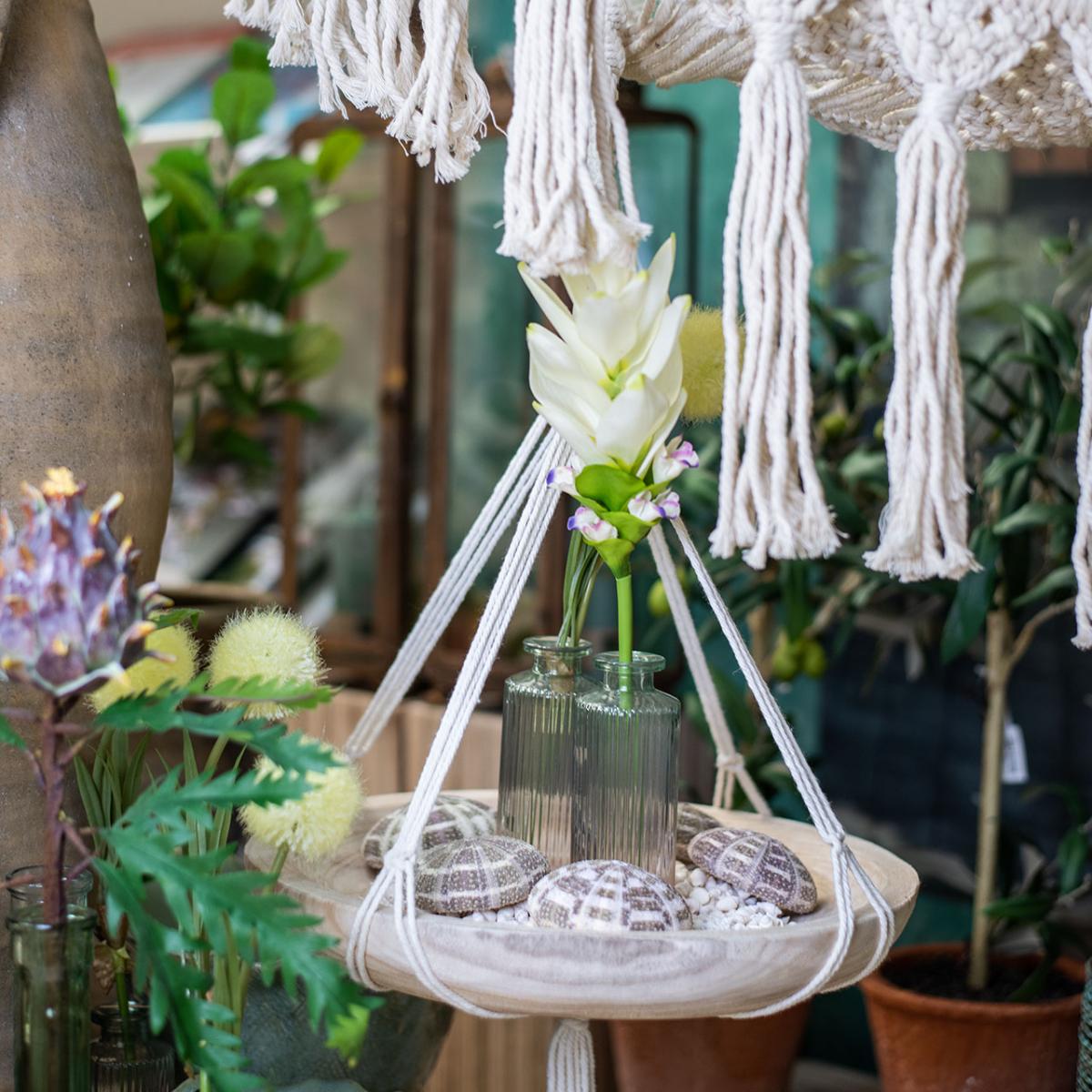 A boho stílust a természetes megjelenés és a sok növény jellemzi. A makramé növénytartók és akasztók, mint ez a függőkosár, helyet biztosítanak a zöld növények mászásához – még akkor is, ha kevés a helyed!