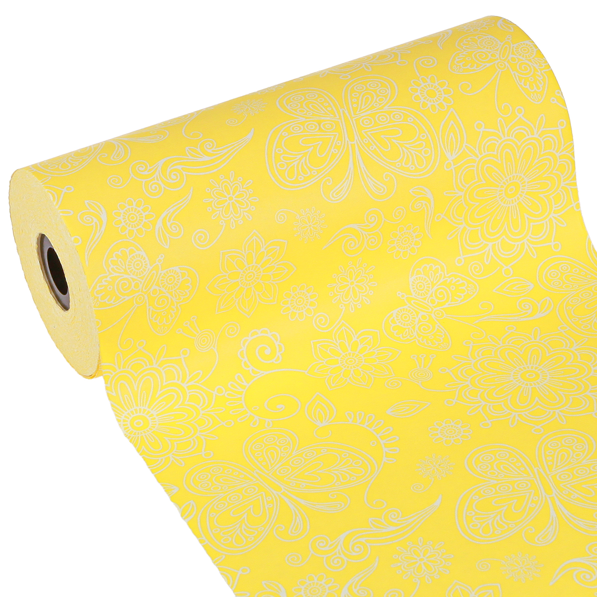 A mintás sárga mandzsettapapír fehér mintával és fehér belső résszel egy strapabíró orsón érkezik, amely adagolóra rögzíthető. Ez azt jelenti, hogy a körülbelül 25 centiméter széles és körülbelül 100 méter hosszú papír mindig kéznél van a könnyű csomagoláshoz!