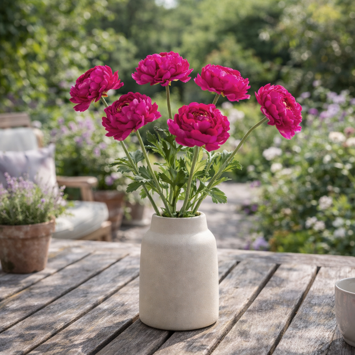 Ennek a művirágnak egy másik nagy előnye: nemcsak lakóterek díszítésére alkalmas, hanem stílusos rendezvények lebonyolítására is. Esküvők, születésnapi partik vagy családi ünnepségek friss hangulatot kölcsönöznek a rózsaszín boglárkának, amely különleges hangulatot kölcsönöz bármilyen alkalomnak. Egyszerűen lenyűgöző fehér gyertyákkal és üvegdíszekkel kombinálva! Tipp: Egészítse ki a virágkompozíciót más művirágokkal, például finom babalevelet utánzó virágokkal vagy robusztus műeukaliptusz ágakkal.