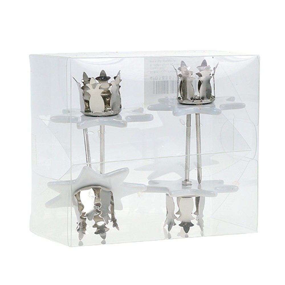 Mécsestartó csillag fehér-ezüst Ø6cm 4db