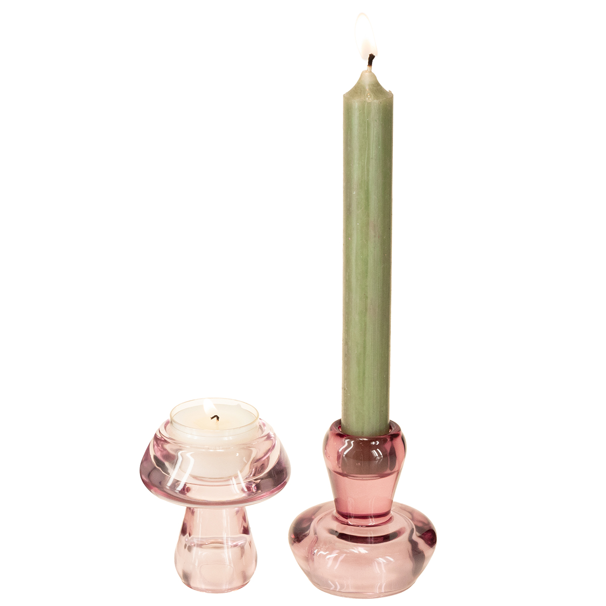 Egyedi dekorációs elemet keresel, amely stílust és meghittséget visz otthonodba? Akkor ez a gomba alakú üveg mécsestartó pont amire szükséged van! Vonzó méretével (Ø 6,5 cm, M 7 cm) és két finom rózsaszín árnyalatával garantáltan otthonod fénypontja lesz. Akár az ablakpárkányon, akár egy ünnepileg megterített asztal részeként, akár a nappaliban egy apró figyelemfelkeltő elemként – ez a két mécsestartóból álló szett eleganciát és melegséget sugároz.