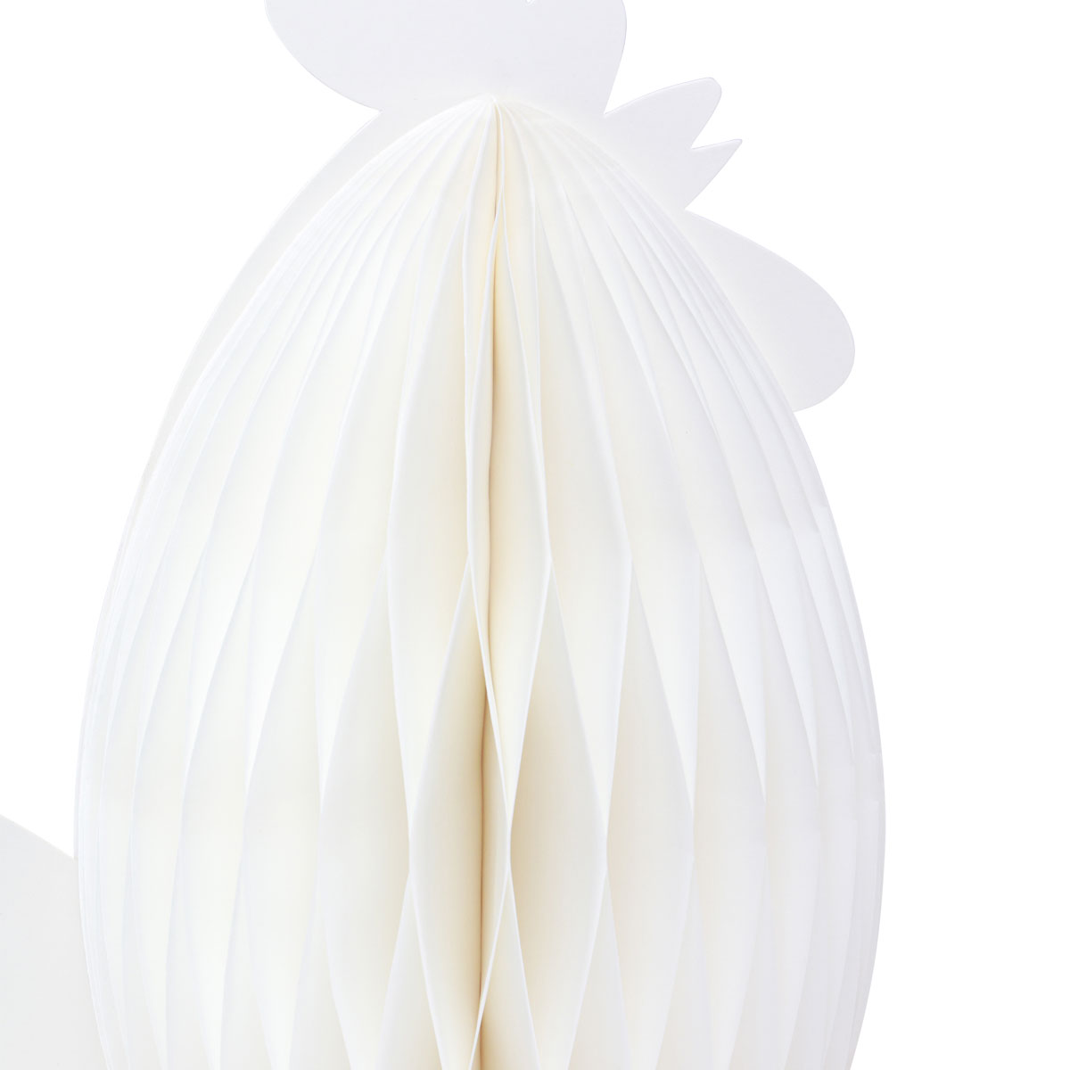 A méhsejt papír borítja a csirke sziluettjét, így a farok, a szárnyak, a fésű és a csőr továbbra is jól látható. A körülbelül 1,3 centiméter széles hajtogatott csirke gyorsan dekoratív csirkévé válik, körülbelül 6,5 centiméter átmérőjű.