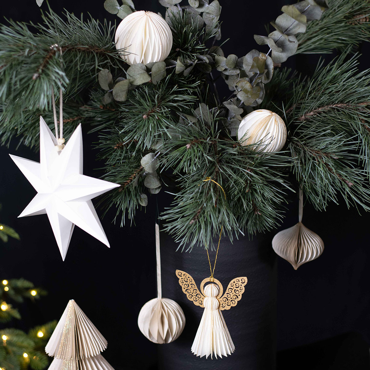 Ha pedig a méhsejt golyókat még több méhsejt golyóval és más papírfigurával szeretnéd kombinálni, karácsonyi dekorációs kínálatunkban számtalan labdát, de papír angyalkát és papír karácsonyfát is felfedezhetsz.