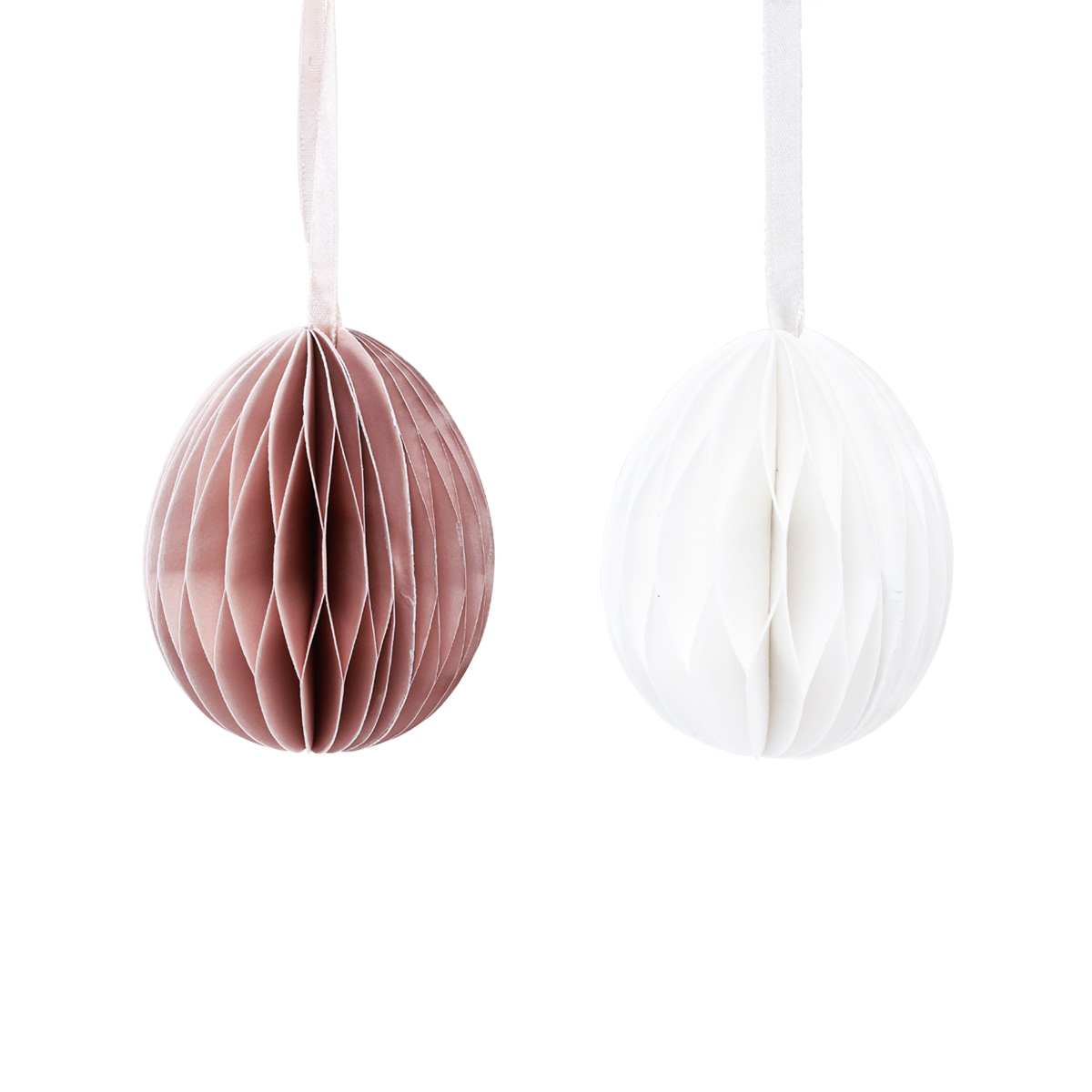 A méhsejt szerkezetnek köszönhetően ezek a húsvéti tojások rendelkeznek azzal a bizonyosval, és igazán háromdimenziósan néznek ki. Rejtett mágnesek tartják össze az összehajtható dekorációt. A fogasként használt selyemszalag színe pontosan összhangban van a tojással.