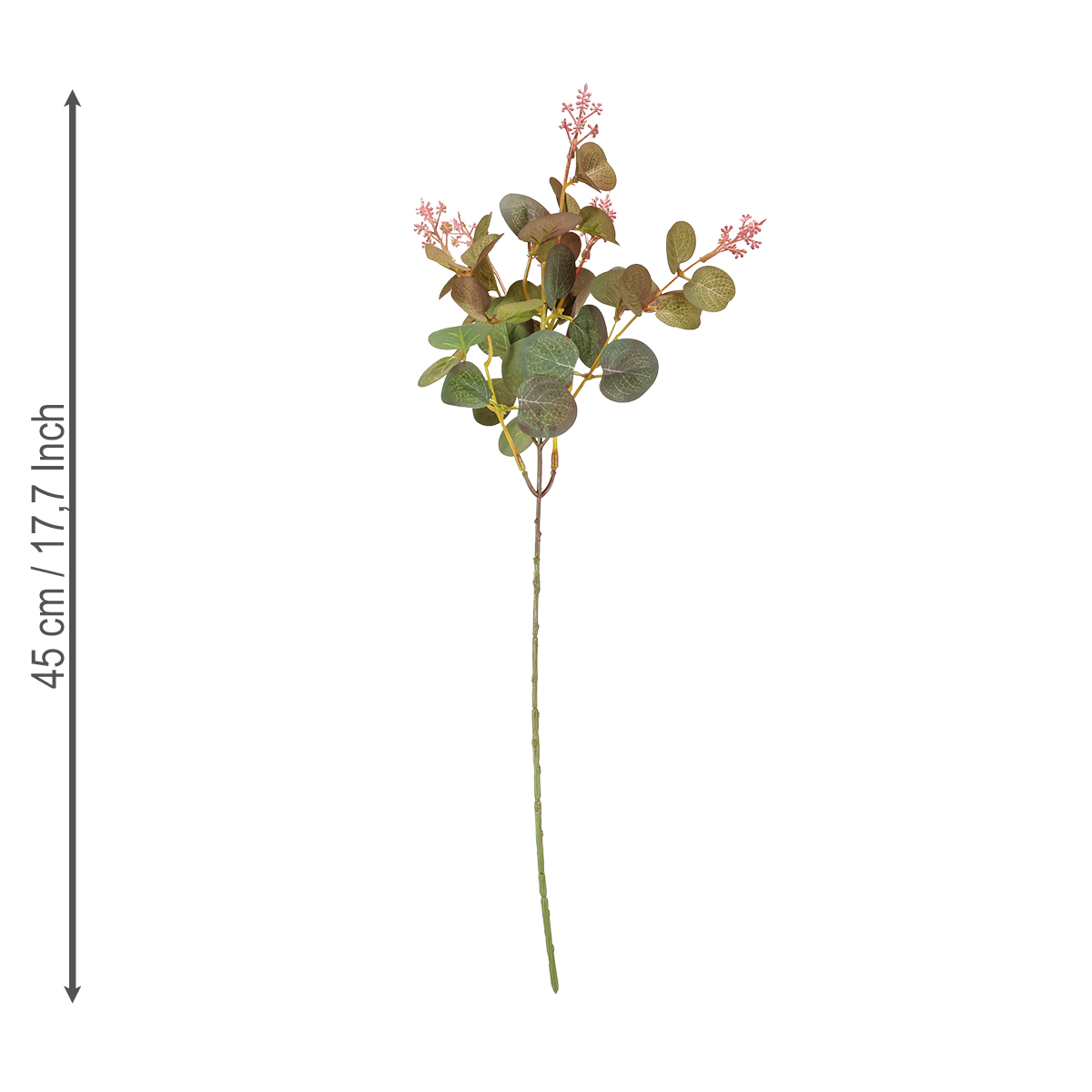Termék neve: Mesterséges eukaliptusz ágak rózsaszín virágokkal, 45 cm, 3 darab