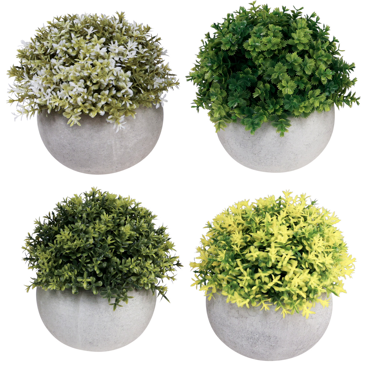 Ha megveszed a kis, cserepes bukszusokat, a négy különböző, valódinak látszó művirág készletként kerül összeválogatásra.