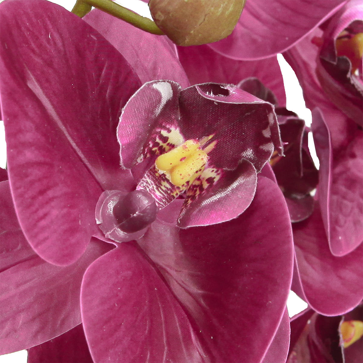 Lila színű mesterséges orchideáink valósághű megjelenésükkel és lenyűgöző színválasztékkal nyűgöznek le. Ezek a művirág orchideák tökéletesek azok számára, akik karbantartás nélkül szeretnék élvezni a Phalaenopsis szépségét. Körülbelül 56 cm-es magasságukkal és nagy, élénk virágaival ideálisak nappali dekorációnak, vagy stílusos elemként különleges alkalmakra. A részletes színátmenetek és a rugalmas, dróttal megerősített szár lehetővé teszi a virágok egyedi elrendezését. A Real Touch hatás gondoskodik arról, hogy a virágok megtévesztően valódinak tűnjenek, és minden belső teret kiemeljenek. Fedezze fel e művirágorchideák esztétikai sokoldalúságát, és hagyja magát elvarázsolni autentikus varázsuktól.