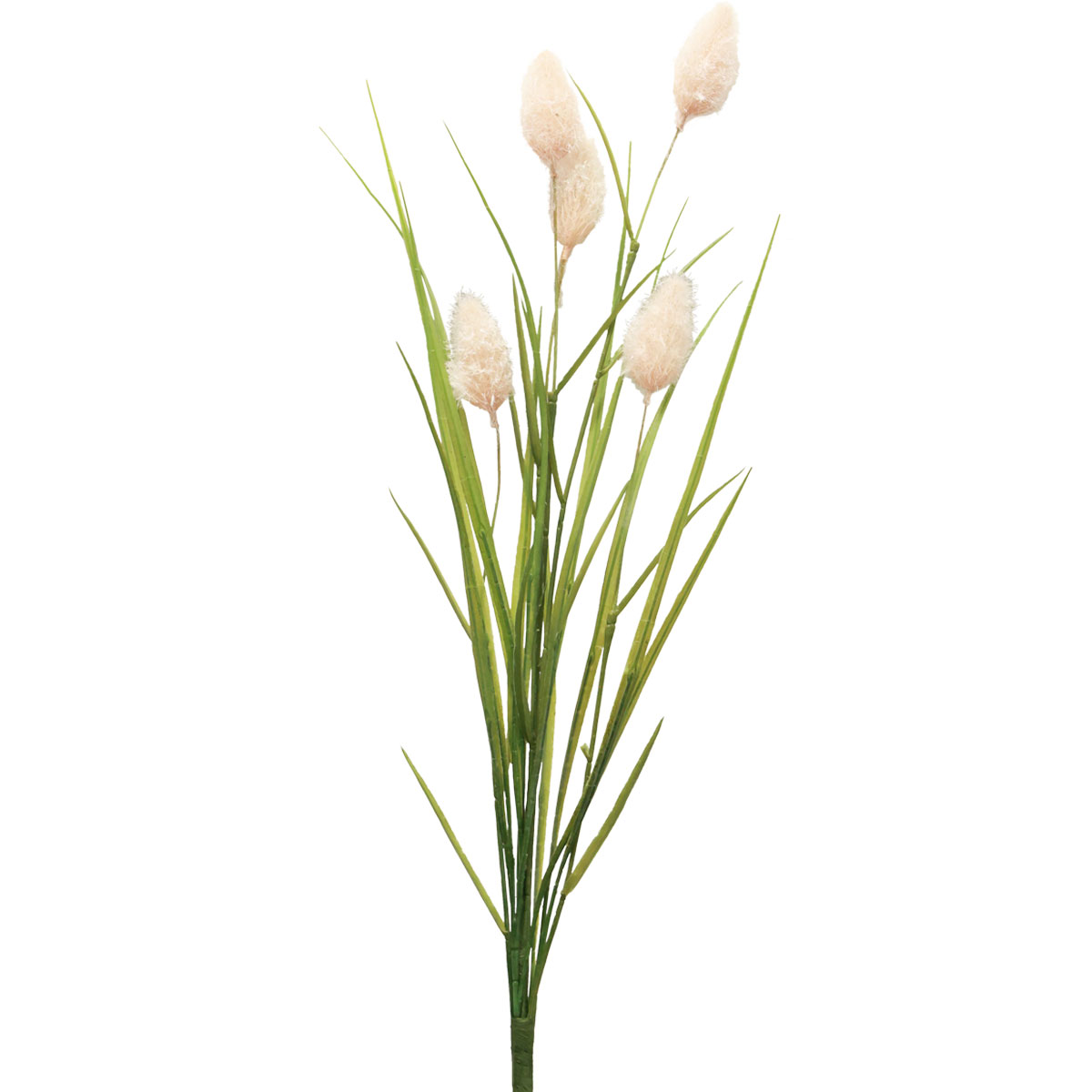Ennek a mesterséges pampafűnek a bozontos, világos rózsaszín tüskéi kissé a gyapotfűre emlékeztetnek, és hosszú száron ülnek, világoszöld fűvel körülvéve. Alul csákányban, azaz robusztus szárban végződik a műnövény, amely könnyen leszorítható.