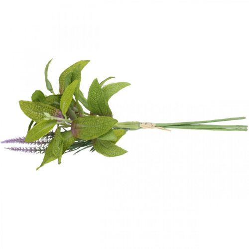 Ez a nagyon természetes hatású műnövény zsályafürtként nagyon élethű selyemvirág. A kötegben négy mesterséges zsályaágat kap. A köteg három lombozatú szárat és egy virágzó ágat tartalmaz két tipikus ibolyaszínű zsályagombával.