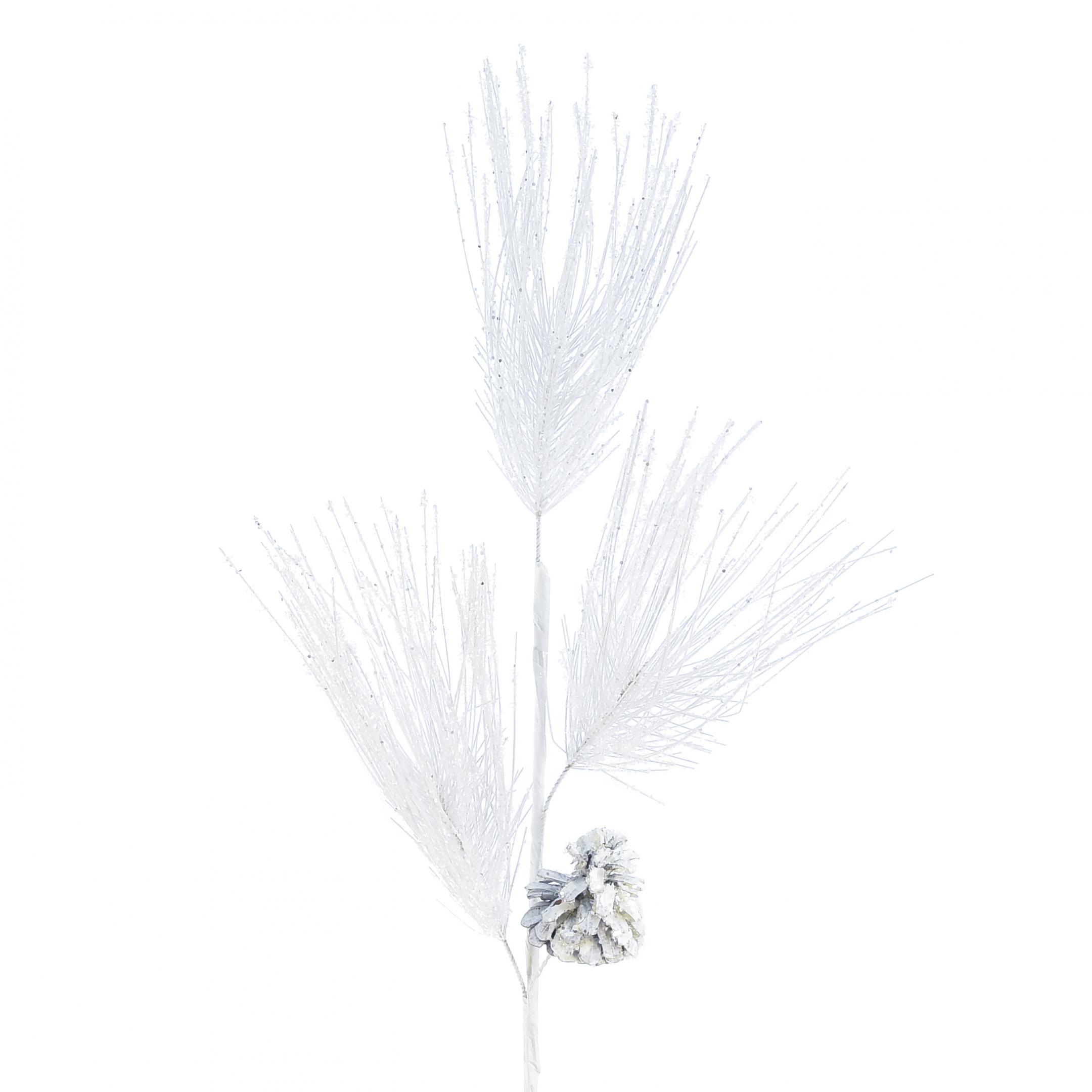 Műfenyő ág tobozokkal fehér csillámmal L55cm