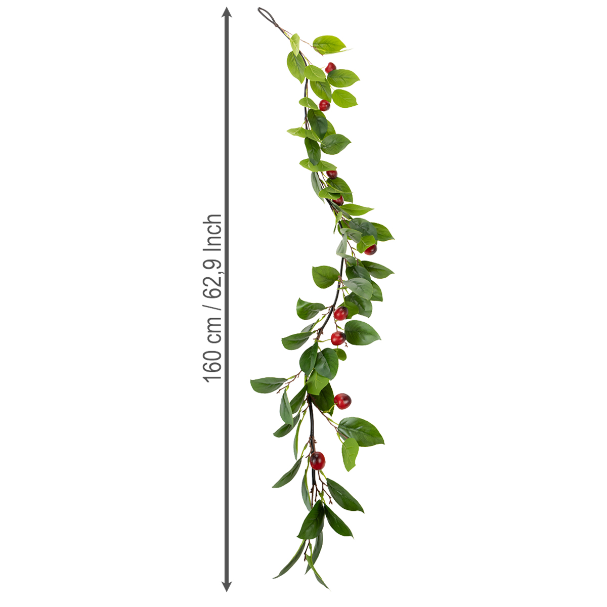 A 160 centiméter hosszú és részletesen kidolgozott műcseresznye girland számos lehetőséget kínál egyedi és stílusos dekoráció létrehozására. A friss zöld és piros tónusok tökéletesen harmonizálnak a különféle lakberendezési stílusokkal. Akár ünnepi asztaldíszként, akár ajtógirlandként, akár kreatív kirakatdíszként használják, ez a virággirland bármilyen szobát elvarázsol. Különösen alkalmas tavaszi és nyári dekorációkhoz, de egész évben természetes hangulatot is teremt.
