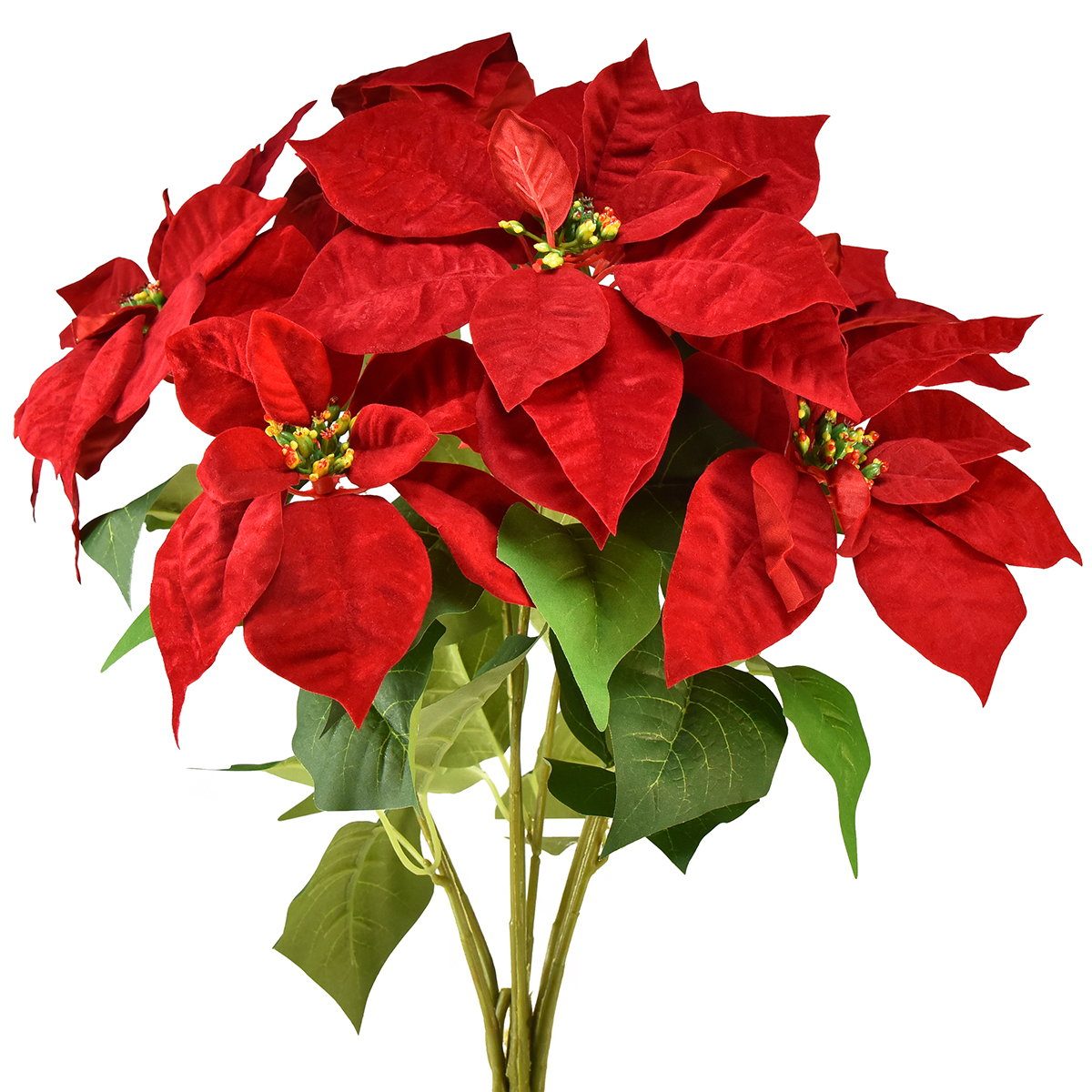- Mesterséges mikulásvirág bársonyos vörös levelekkel