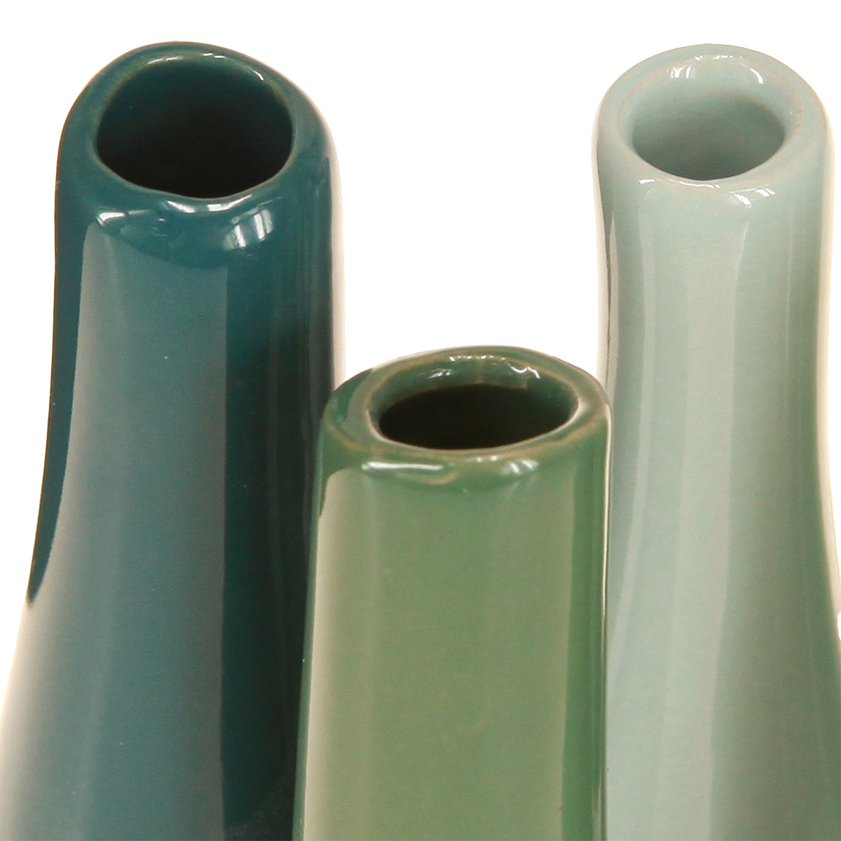 Ezeknek a dizájner vázáknak a zöld árnyalatai gyönyörűen harmonizálnak a természetes anyagokkal, mint a fa, vagy a skandináv stílusú dekorációval. Helyezze őket a konyhapultra bájos kiegészítőként, vagy díszítse a fürdőszobai polcot, hogy friss, élénk hatást keltsen. A szett feltűnő dekoratív elemként is szolgálhat egy éjjeliszekrényen vagy íróasztalon – tökéletes azok számára, akik értékelik a stílusos részleteket.